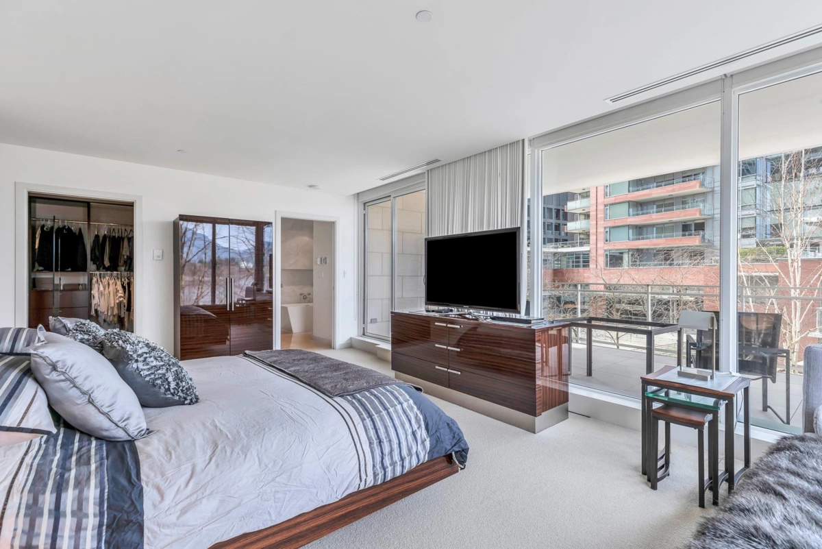 One of one luxury: A 5,450 SQFT waterfront TH at Two Harbour Green with direct access to a private 5-car garage and 2,000 sqft of terraces. The largest TH ever offered on the DT Peninsula, this extraordinary home presents an unparalleled opportunity for the discerning buyer, combining expansive scale and refined sophistication rarely found in the heart of the city.Over 40 ft of frontage with stunning views of Stanley Park, the harbour, and mountains. The upper level features 3 ensuite beds, primary with 2 walk-in closets. Designer Snaidero kitchen with Miele and Sub-Zero. The lower level offers a rec room with full bath, roughed-in wet bar, and customizable space for entertainment, extra beds/suite. Resort-style amenities: pool, gym, virtual golf, and 24-hour concierge.