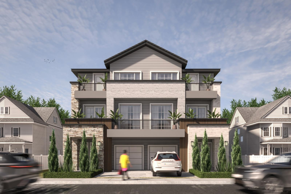 Presale Duplex, designed 3-level home in a family-friendly Surrey neighborhood. Features a legal 1-bedroom suite on the main floor with full kitchen, full washroom, and separate entrance ideal for rental income or extended family. Upper levels offer a functional layout with open-concept living and dining, a modern kitchen, convenient laundry, spacious bedrooms, and a primary bedroom with ensuite. Enjoy outdoor living with a private upper-level sun deck. Ideally located directly across from Bridgeview Elementary School and facing a large fenced playground. Includes garage and storage. Close to schools, parks, shopping, transit, and major routes. Estimated completion November 2026. A great opportunity to secure a brand-new home with income potential in a desirable Surrey location.