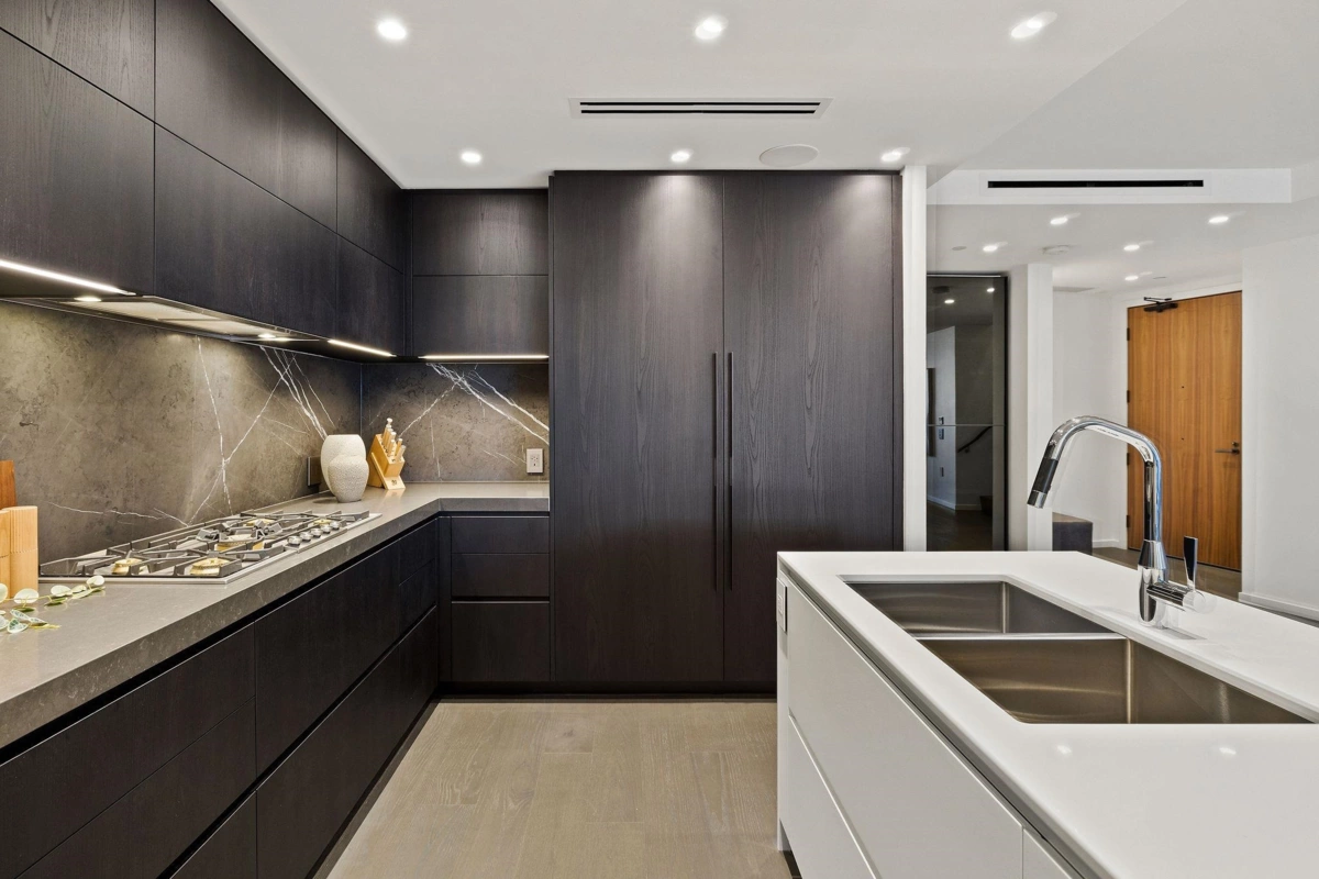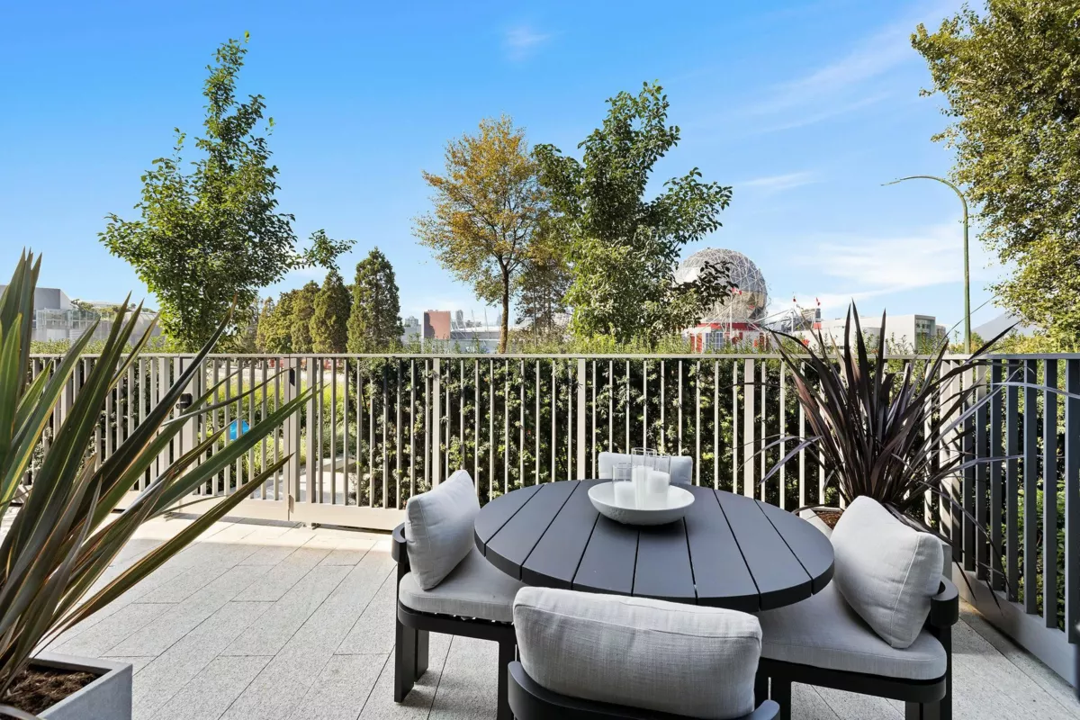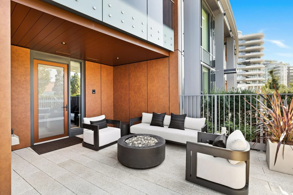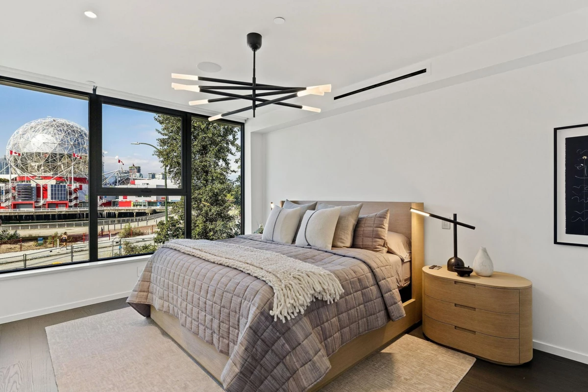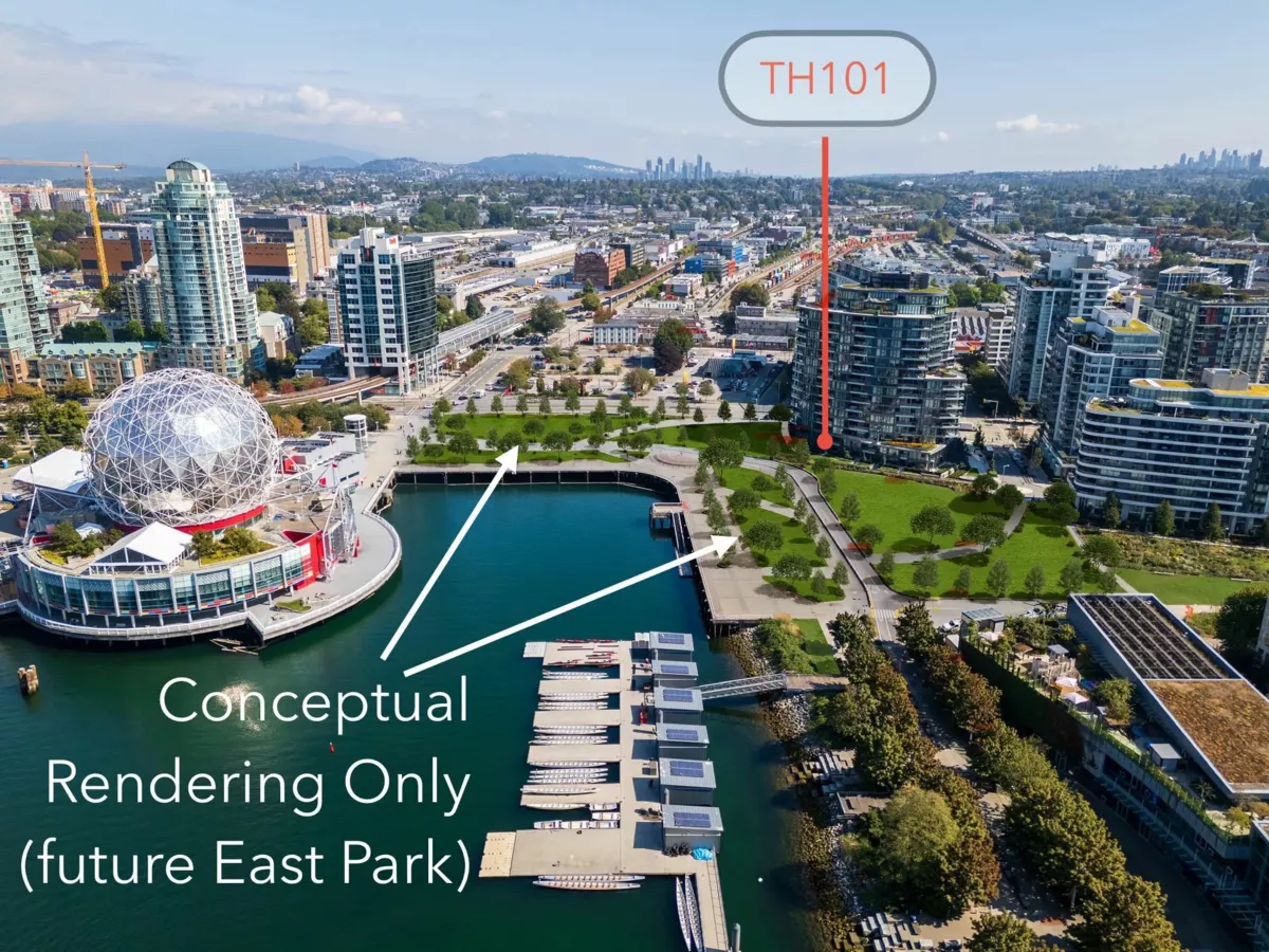 Exclusive waterfront end-unit Townhome @ Tesoro, Concert’s crown jewel on False Creek. This rare 2-level 2551sf, 3BR+den, 3-bath plan feat's 450sf of patio space & captures water, city & mtn views soon framed by the new East Park. Fully-furnished & artfully-styled by Restoration Hardware Design Team incl. custom furniture, lighting, rugs, linens, décor + Crate&Barrel dish/glass/cookware. Professionally expanded SAVANT smart-home seamlessly integrates shades, lighting, TVs, SONOS multi-rm audio & security—well beyond developer spec. Premium concrete build, A/C, Gaggenau appliance pkg, dbl private secure garage + 75sf concrete storage. 1 of only 4 park-side THs, this residence unites bespoke interiors, advanced tech & world-class amenities in Vancouver’s most coveted waterfront setting.