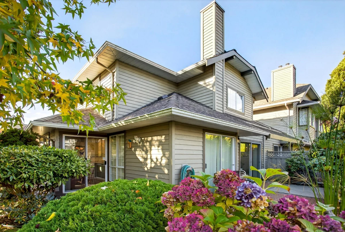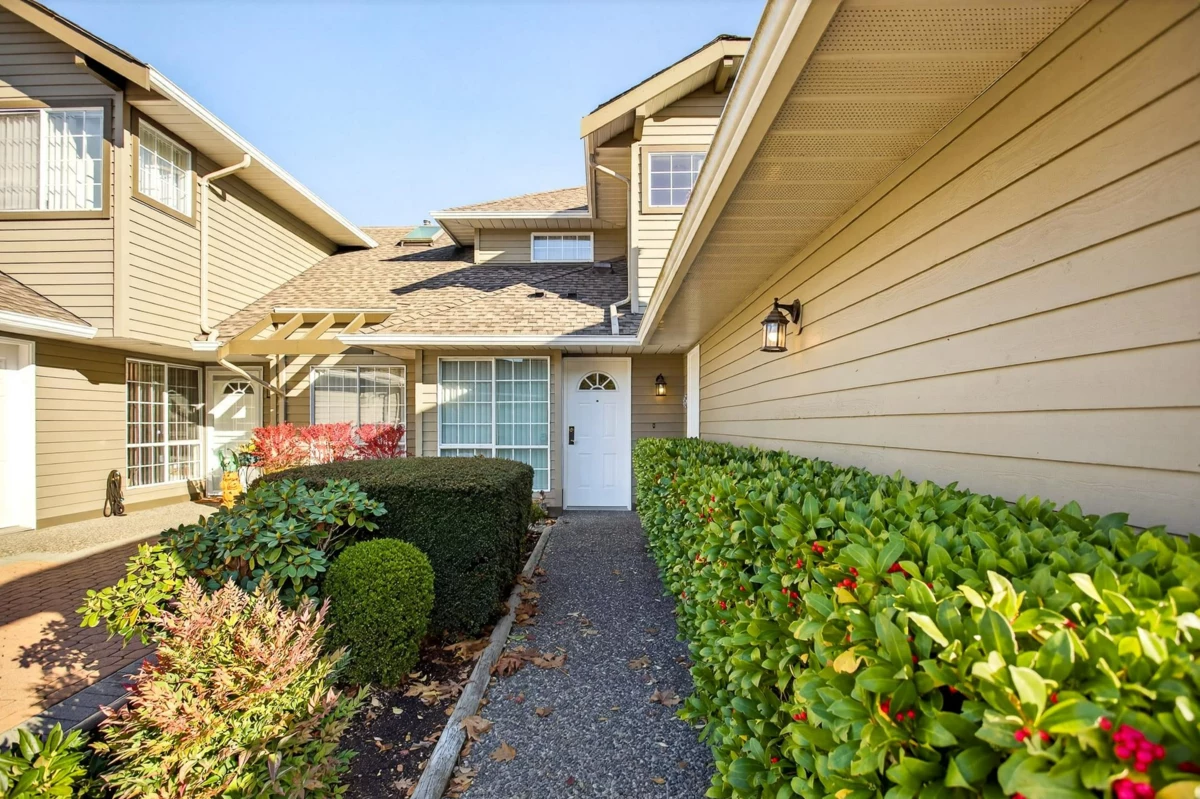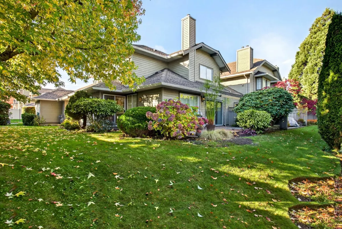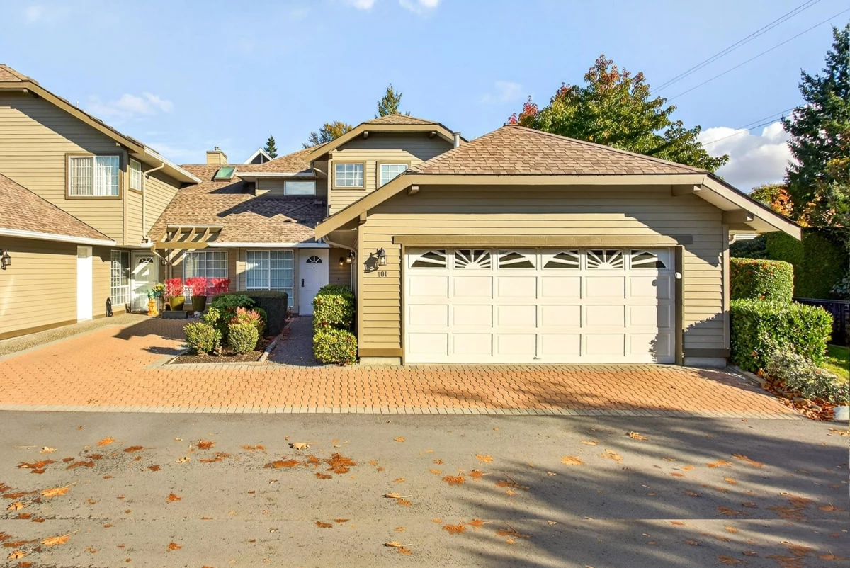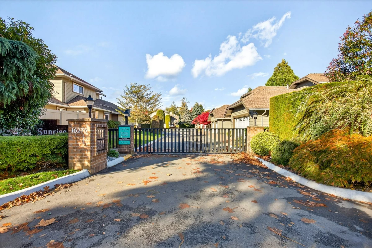 FIRST TIME ON THE MARKET! Welcome to Sunrise Pointe, a desirable 55+ gated community in the heart of South Surrey/White Rock. This bright and immaculate 2-level END UNIT townhome offers a spacious, functional layout with 3-bedrooms including a primary bedroom on the main floor PLUS a second primary upstairs. Living room features vaulted ceilings, cozy gas fireplace and sliding doors opening to a massive PRIVATE wraparound patio and garden. Ample kitchen counter space and cabinetry for everyday living and entertaining. SIDE-BY-SIDE double garage plus visitor parking. Complex offers a clubhouse, pond with water feature, and beautifully landscaped grounds. 2 pets allowed, rentals with restrictions. Walk to shopping, recreation, restaurants, and transit—minutes to the beach and highway access.
