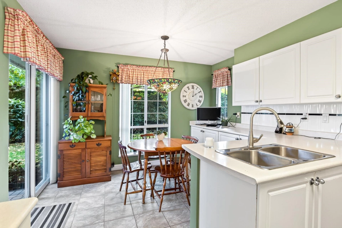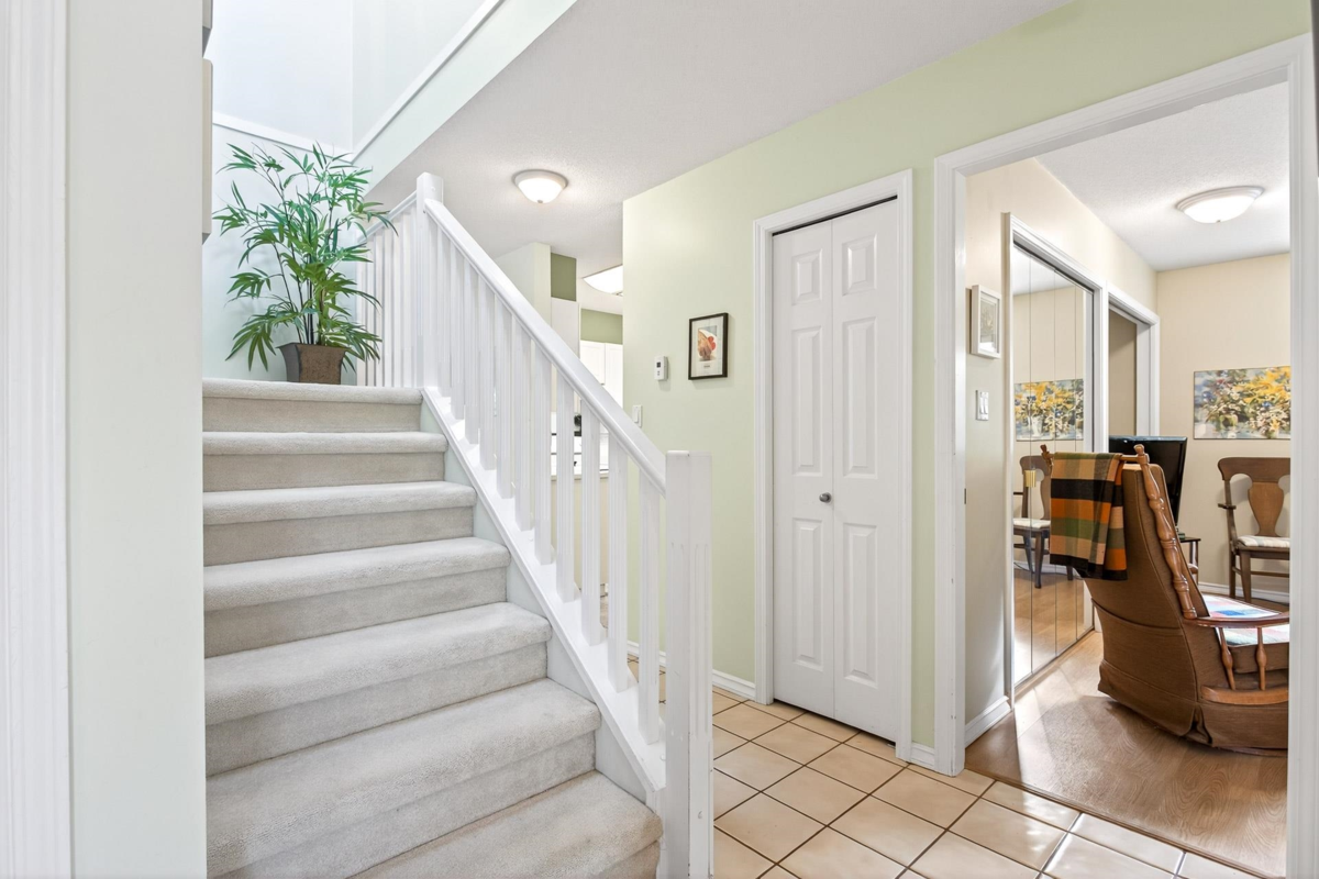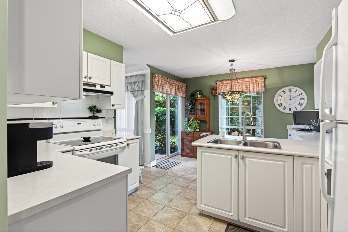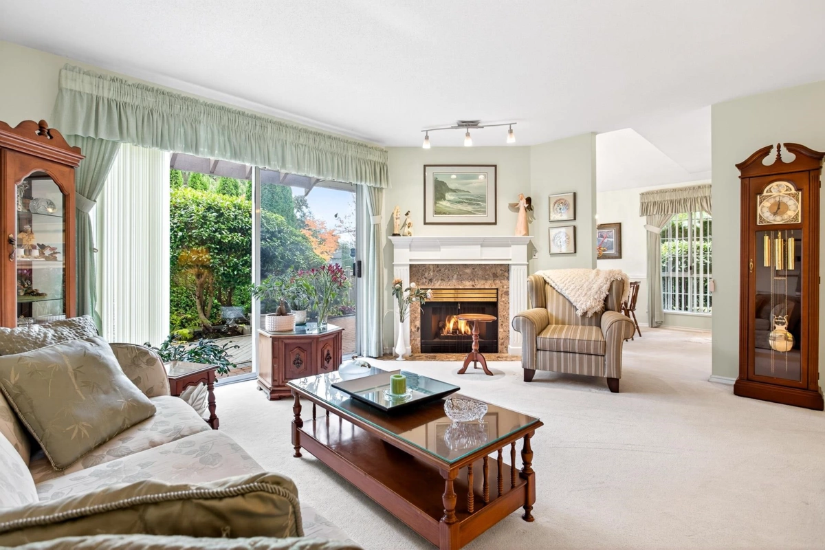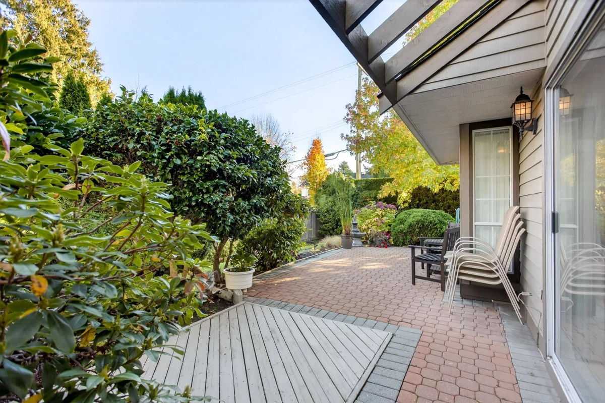 FIRST TIME ON THE MARKET! Welcome to Sunrise Pointe, a desirable 55+ gated community in the heart of South Surrey/White Rock. This bright and immaculate 2-level END UNIT townhome offers a spacious, functional layout with 3-bedrooms including a primary bedroom on the main floor PLUS a second primary upstairs. Living room features vaulted ceilings, cozy gas fireplace and sliding doors opening to a massive PRIVATE wraparound patio and garden. Ample kitchen counter space and cabinetry for everyday living and entertaining. SIDE-BY-SIDE double garage plus visitor parking. Complex offers a clubhouse, pond with water feature, and beautifully landscaped grounds. 2 pets allowed, rentals with restrictions. Walk to shopping, recreation, restaurants, and transit—minutes to the beach and highway access.
