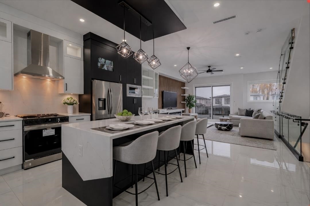 Welcome to this exceptional modern home, perfectly situated in one of South Surrey’s most desirable neighbourhoods. Boasting 3 spacious bedrooms and 2 full bathrooms upstairs, the upper level is anchored by a stunning primary suite with serene ocean views, offering a tranquil retreat. The main floor features a bright, open-concept layout with a generous living room, elegant dining area, and a chef-inspired kitchen with high-end finishes, premium appliances, and abundant storage—ideal for entertaining or everyday family life. The lower level presents a fully self-contained 1-bedroom suite with its own entrance, providing rental income potential or flexible space for extended family. All of this is just minutes from top-rated schools, boutique shopping, fine dining, the Grandview Aquatic!