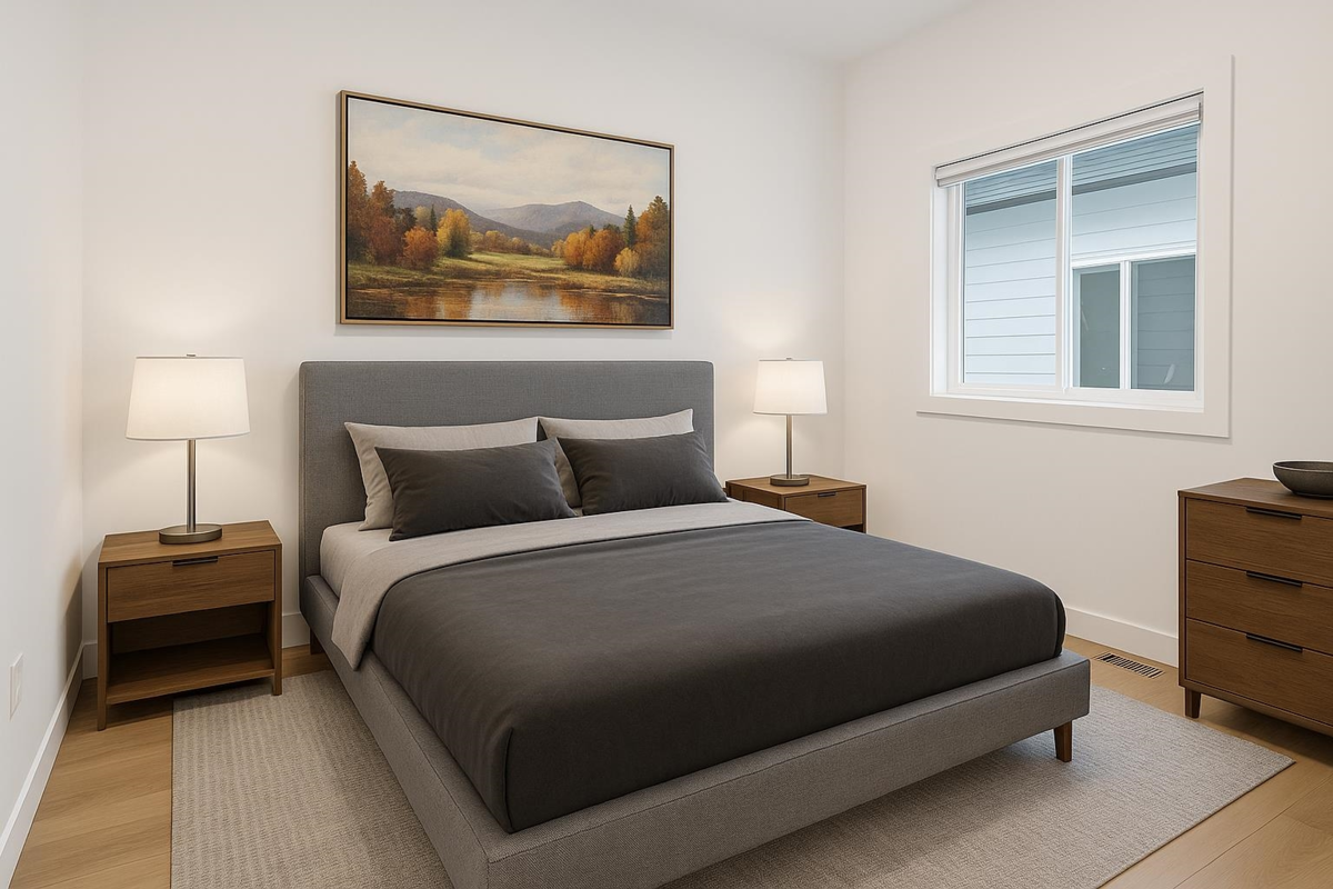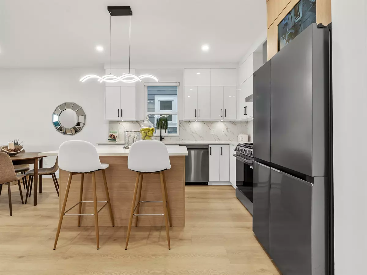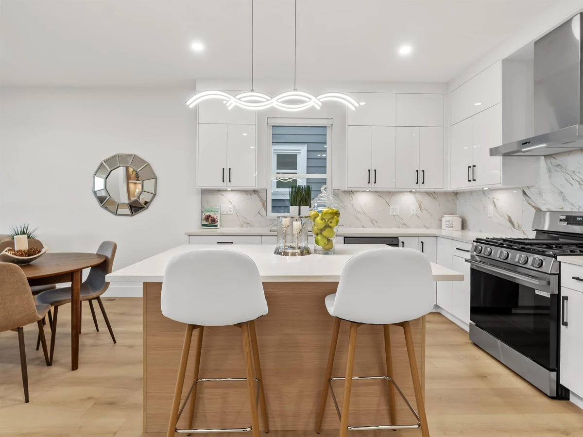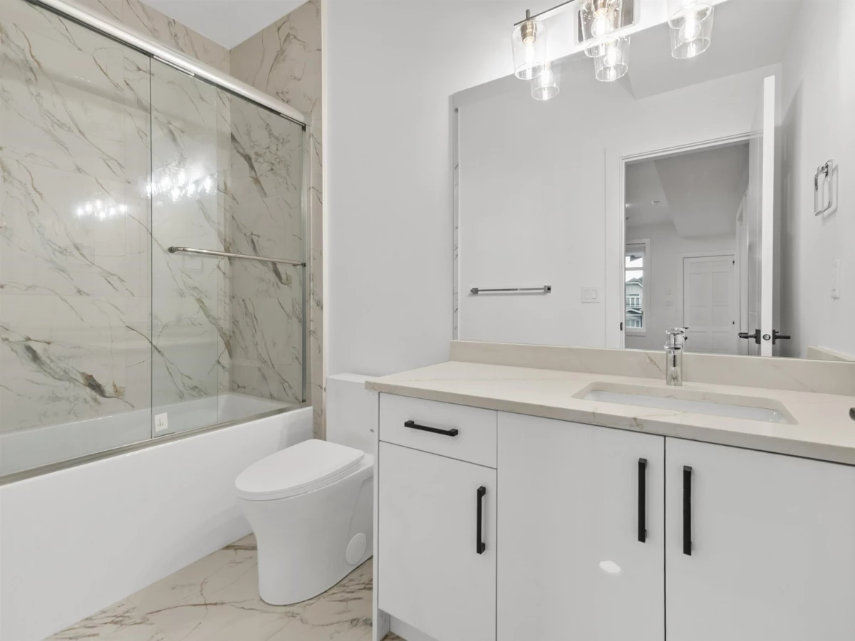 Presenting ALARA II by Symbolic Construction Group. This exclusive collection of front and back duplex homes offers luxury living without the burden of STRATA FEES. Each front unit is a 4 bed, 4 bath residence, thoughtfully crafted w/high end finishes, featuring 9ft ceilings through out, expansive windows for abundant natural light, quartz countertops, premium appliances built in entertainment unit & security, AC, & energy efficient natural gas heating built with STEP CODE 4 in mind. Tiled baths & elegant accent walls add a sophisticated modern touch. Enjoy 3 spacious levels of living, complete w/a large recreation room, a full bathroom, & an additional bedroom perfect as a mortgage helper. The detached garage is equipped w/220 volt power. Don't miss the chance to secure your dream home!