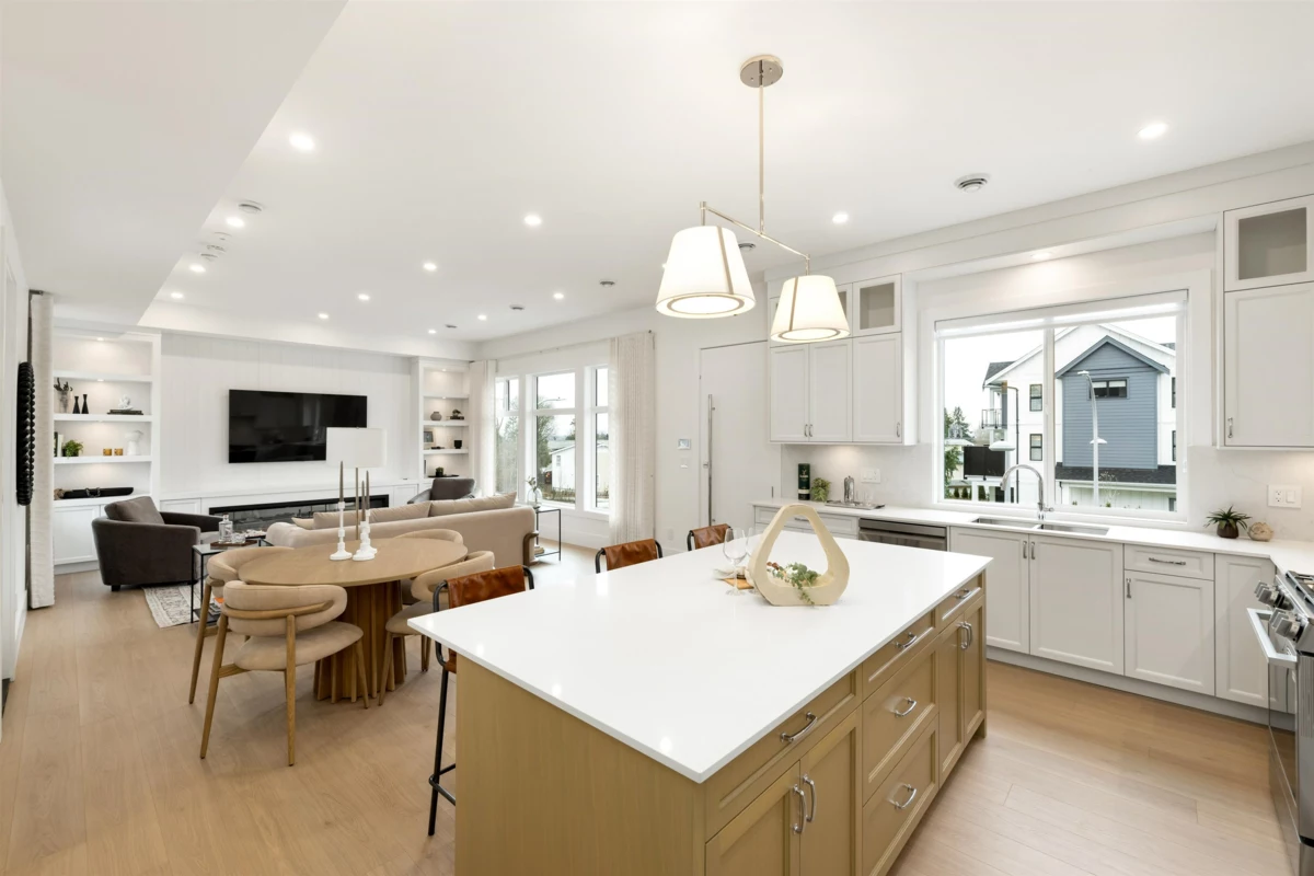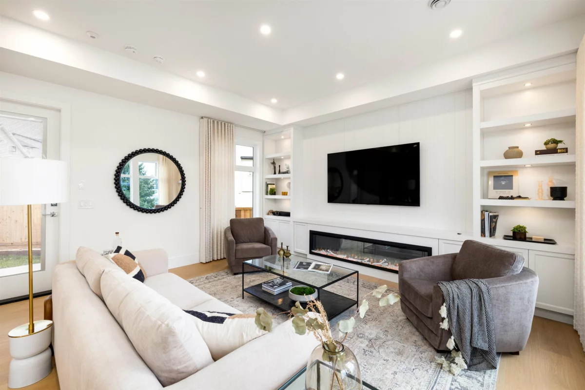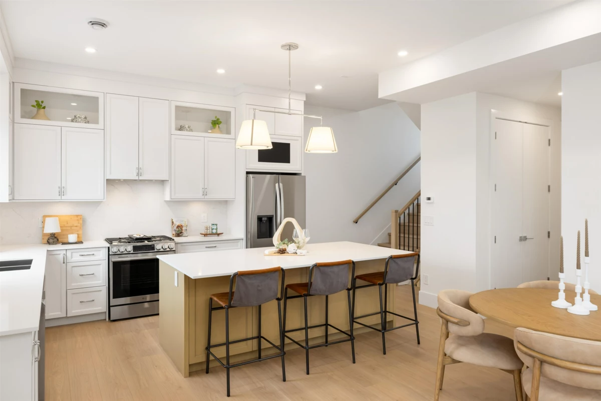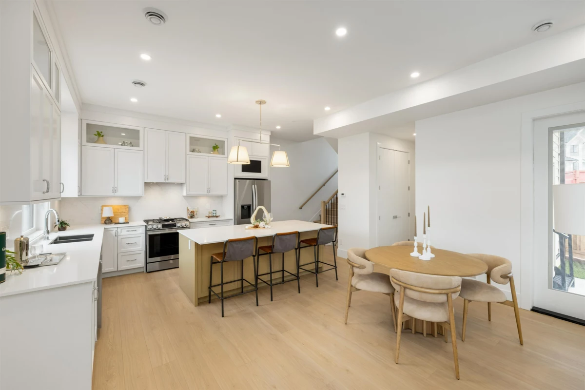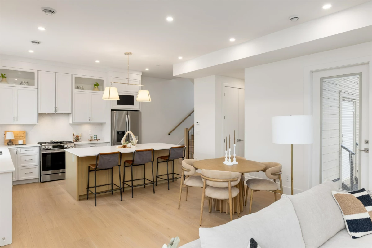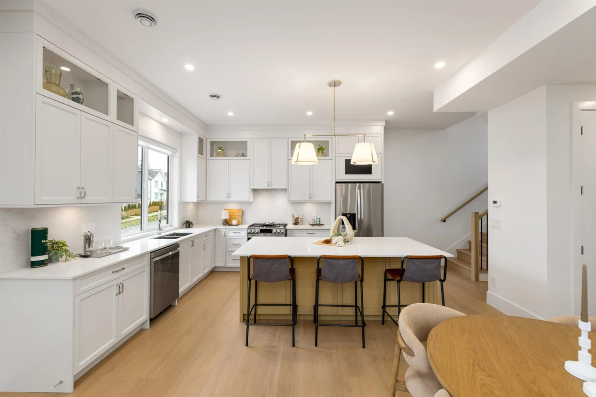 Brand-new half duplex in the desirable Grandview neighbourhood, built by Woodcrest Homes and situated on a generous 5,640 sq ft lot. The main floor features a bright, open-concept layout with spacious living and dining areas, highlighted by a sleek kitchen with modern finishes and a large island—ideal for everyday living and entertaining. Enjoy picturesque mountain views from the upper level. Upstairs offers 3 bedrooms and 2 bathrooms, including a spacious primary suite with walk-in closet and a beautifully finished ensuite. The walkout 1-bedroom legal suite provides excellent mortgage support or a comfortable option for extended family.Ideally located just steps from Ta’talu Elementary and minutes to Grandview shops, restaurants, aquatic centre, and convenient highway access.