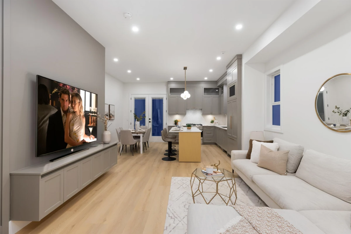 Brand-new half duplex in desirable Grandview built by Woodcrest Homes. Main floor includes a full bathroom and a flexible bedroom that doubles as an ideal home office, plus a stylish Fisher & Paykel kitchen with large island and bright open living/dining space. Upstairs features 3 bedrooms and 2 bathrooms, including a spacious primary with walk-in closet and luxury ensuite. Bonus 1-bedroom legal suite for great mortgage help or in-law use. Steps to Ta’talu Elementary and minutes to Grandview shops, restaurants, aquatic centre, and highway access.