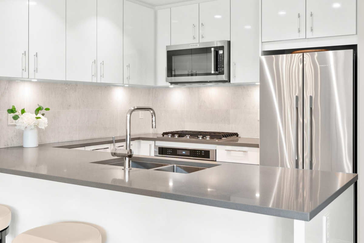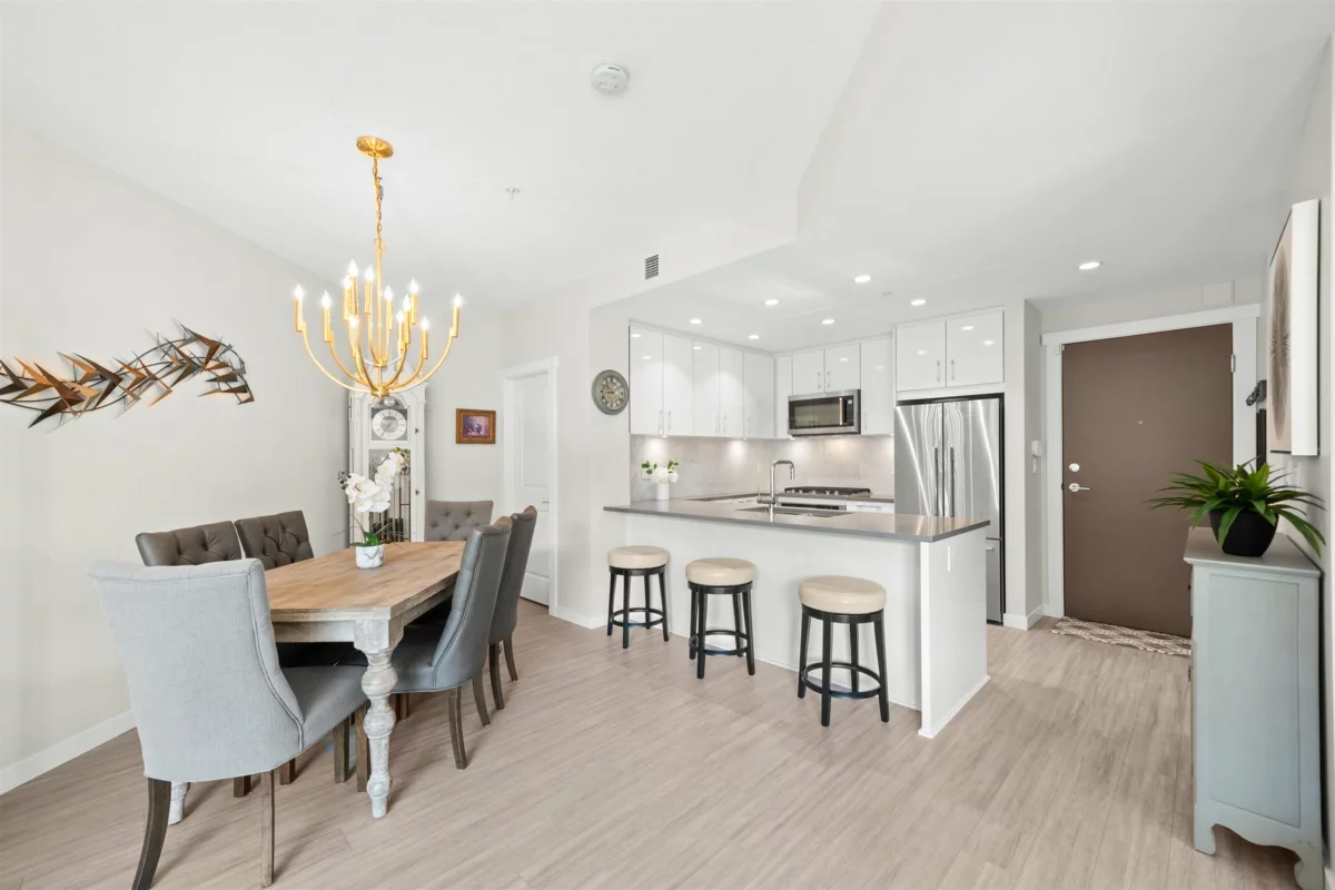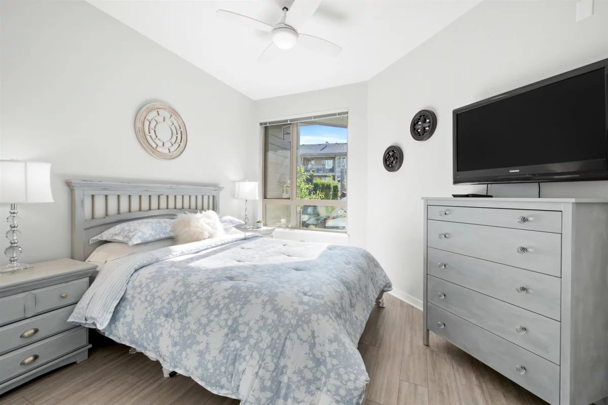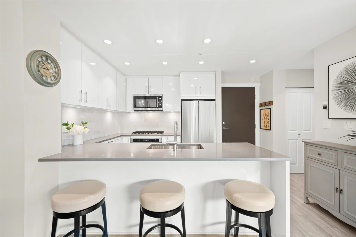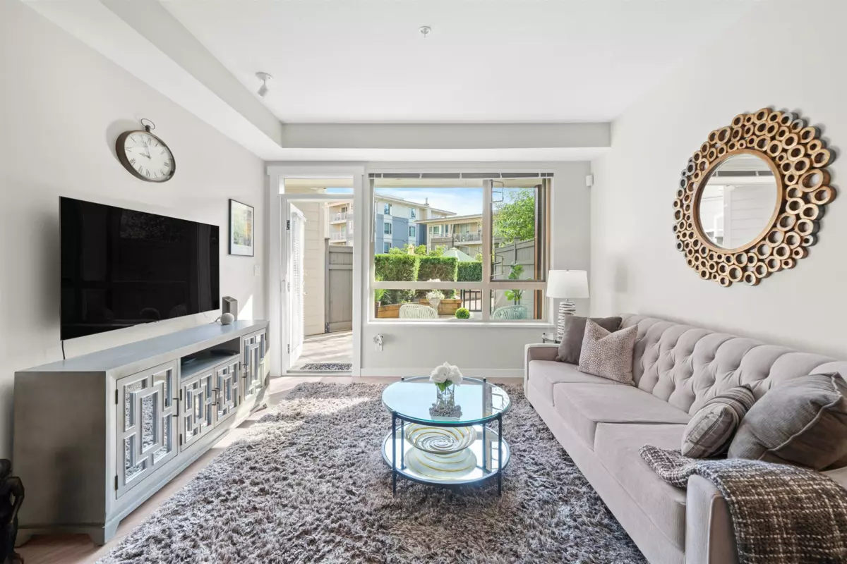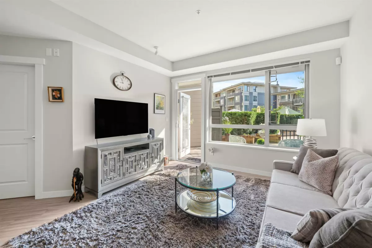 Spacious ground-level 1 bedroom at Juniper by Polygon. Features a large 214sf patio on the East-facing side of the building, very quiet and ideal for morning light. Modern design throughout, stylish kitchen with stone counters, stainless steel appliances, gas range, large dining area & a bonus storage room. Enjoy the convenience of ground level living in the heart of Lynn Valley. Step out to your private gated patio, great for BBQs, entertaining, pet owners and easy trail access. Amenities include a gym, bike room & dog wash. In-floor radiant heating, hot water & gas included in strata fee! 1 Parking & 1 Storage included. Steps to Lynn Valley Centre, groceries, coffee shops, parks and schools. Open House Sat (Jan 17) 1-2pm!