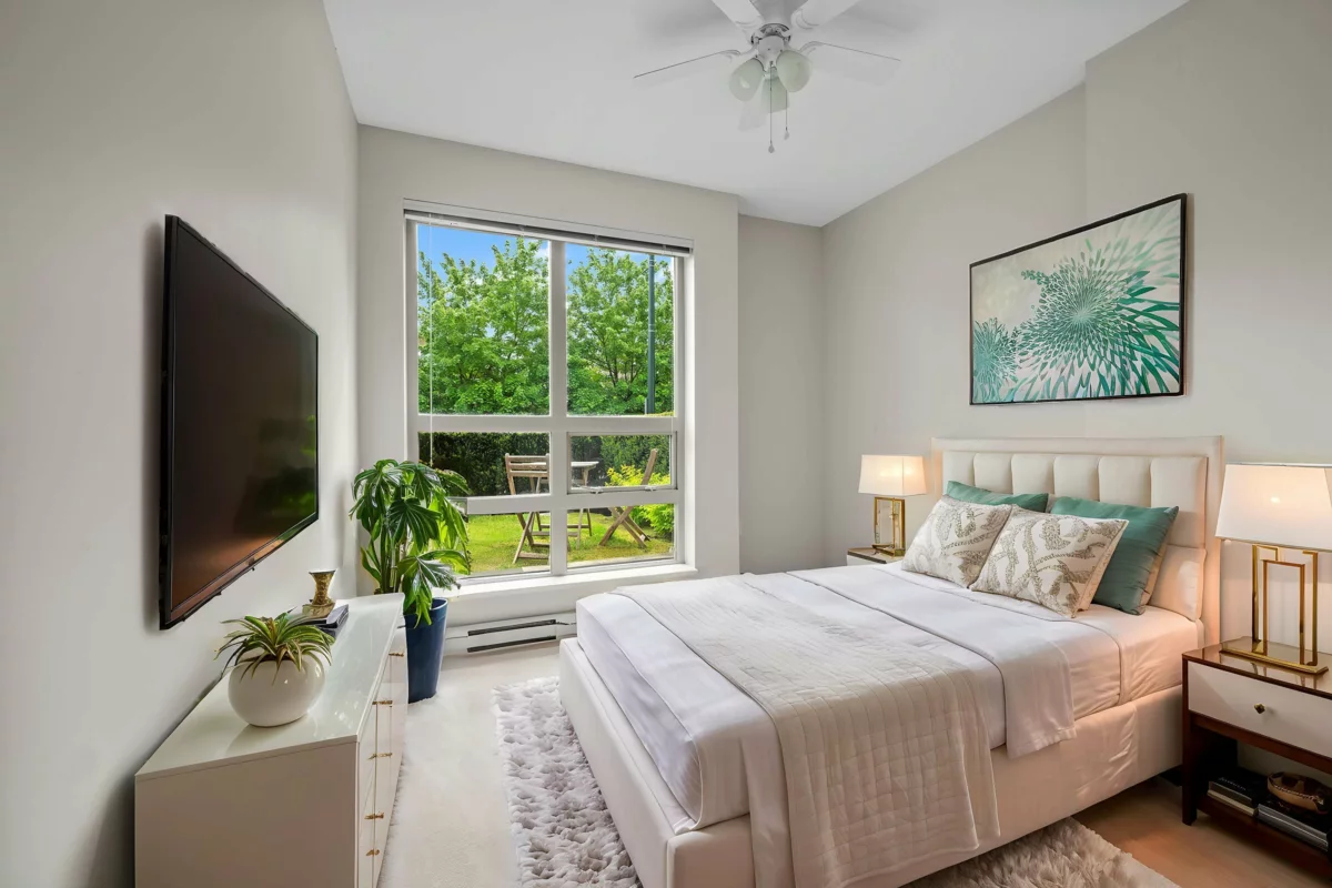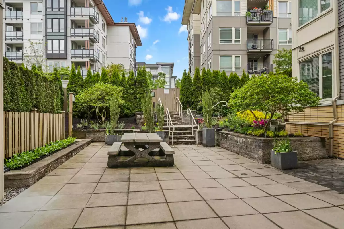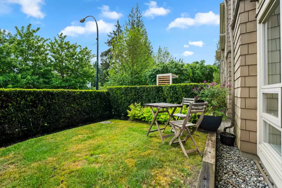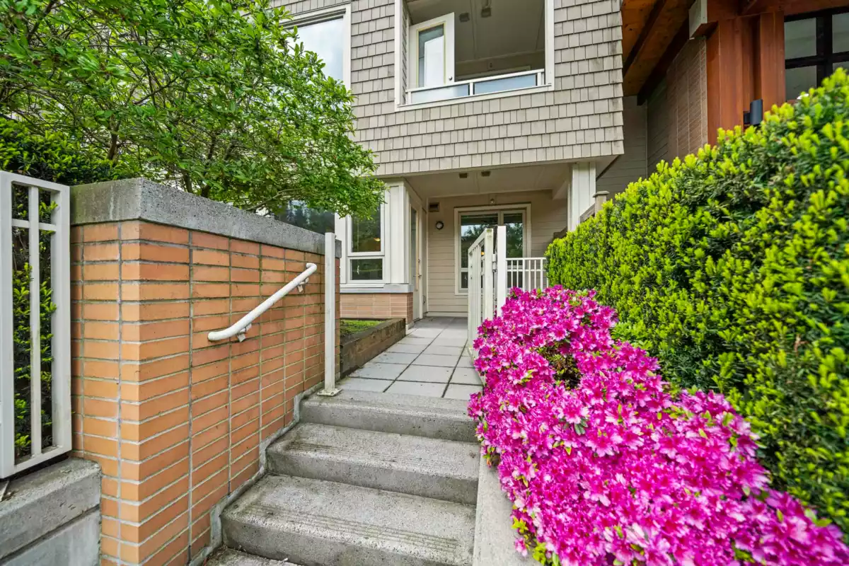 Welcome to one of the most desirable homes in Polygon’s Canyon Springs! This rarely available 2-bedroom, 2-bath ground-level residence offers exceptional convenience and comfort, featuring dual entrances—private street access plus building entry—and a fenced yard with over 100 sq. ft. of lush green space. Perfect for families, kids, or pets! Inside, enjoy 9’ ceilings, a bright and functional layout, and morning light that fills the home with natural sunshine. In the afternoons, the shaded exposure helps keep interiors cool as temperatures rise. All of this in the heart of Lynn Valley Village—just steps to shopping, dining, parks, top-rated schools, and public transit. Family-friendly