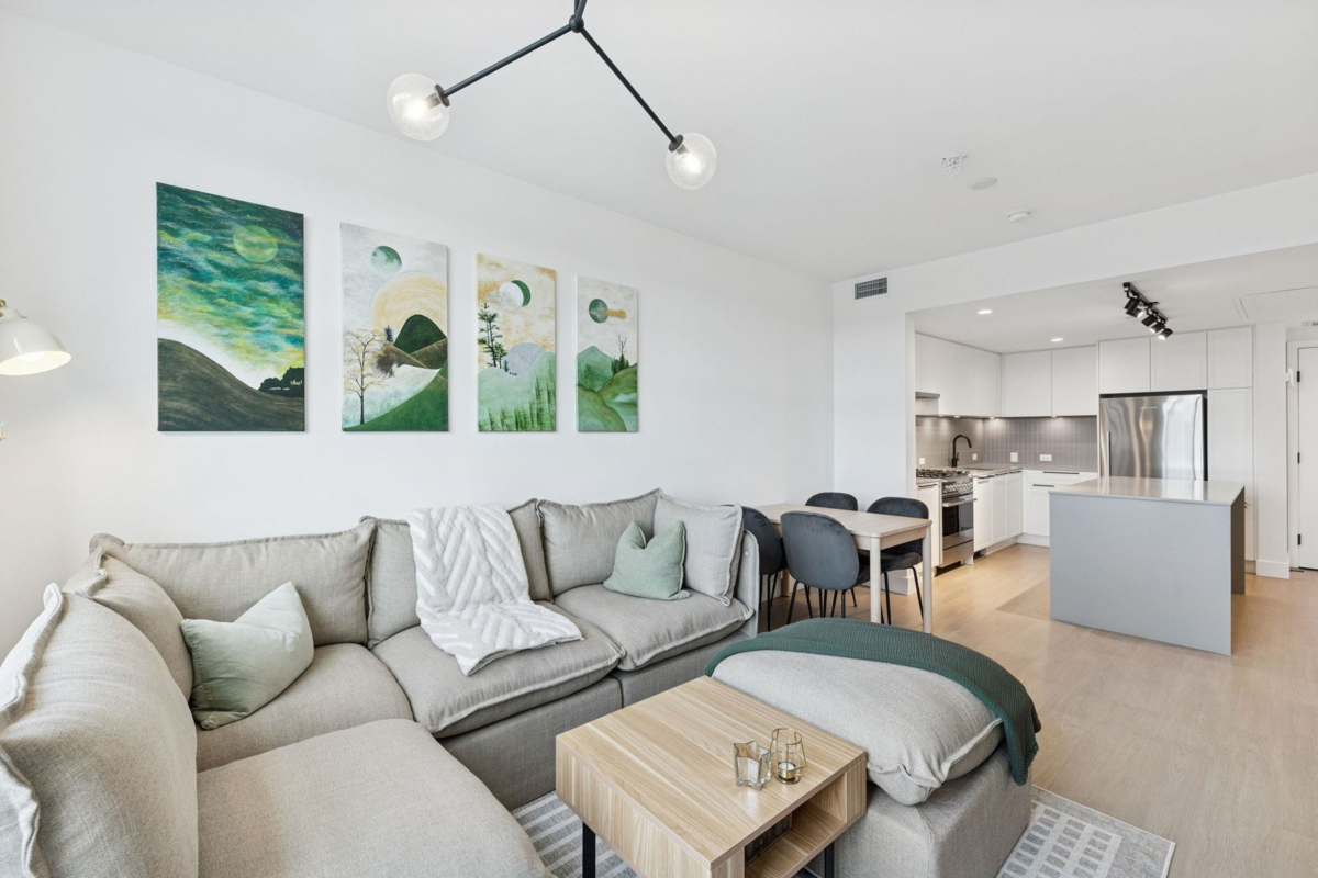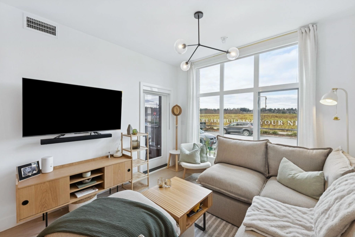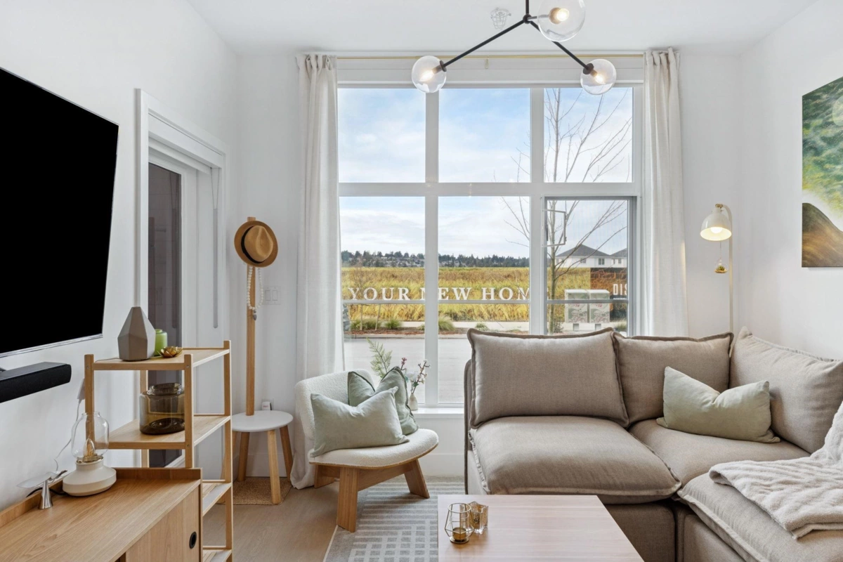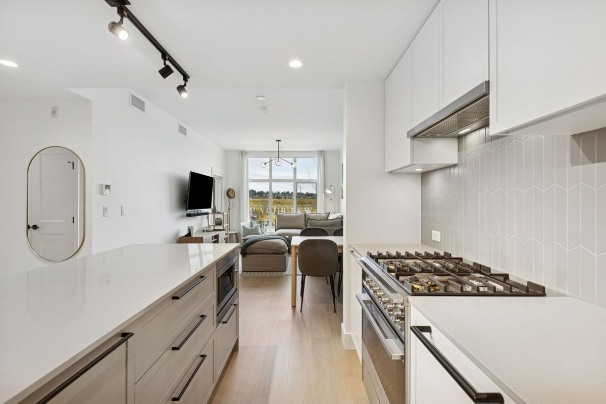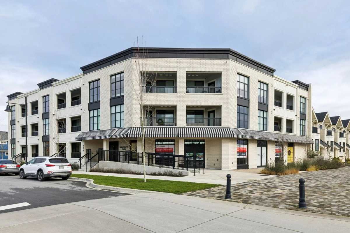 Discover elevated coastal living at Highstreet Flats in Southlands, Tsawwassen. This 880 sq ft, 2-bedroom + Den residence showcases an open-concept design with refined finishes like the gourmet kitchen with quartz countertops and premium Fisher Paykel appliances. This home offers a generously sized primary bedroom with a spa-themed ensuite. A private covered balcony provides the perfect setting to relax. This almost-new home also features high ceilings, a private entrance, parking with roughed-in EV charging, and an energy-efficient heat pump for both heating and A/C maintained through strata. Ideally situated in the heart of the charming Southlands community, just steps from Earthwise Garden, local markets, cafés, restaurants, Centennial Beach, and Boundary Bay. Apt only showings.