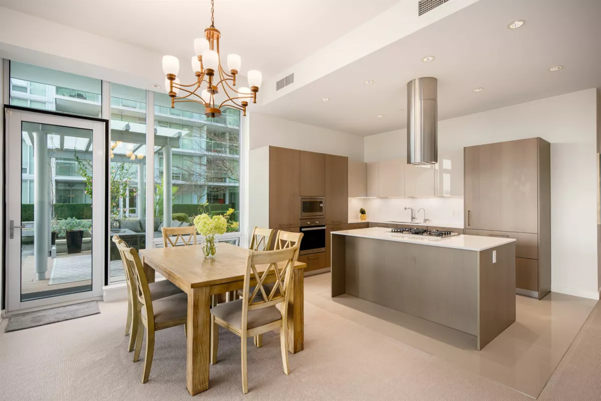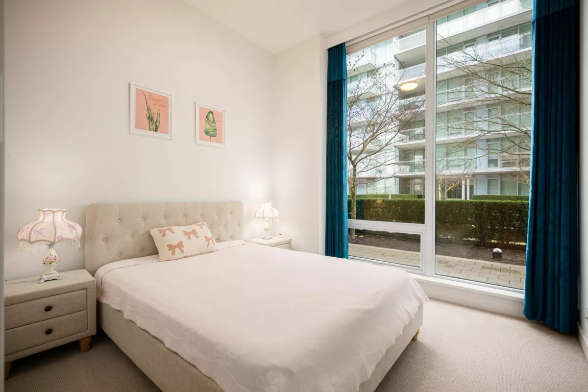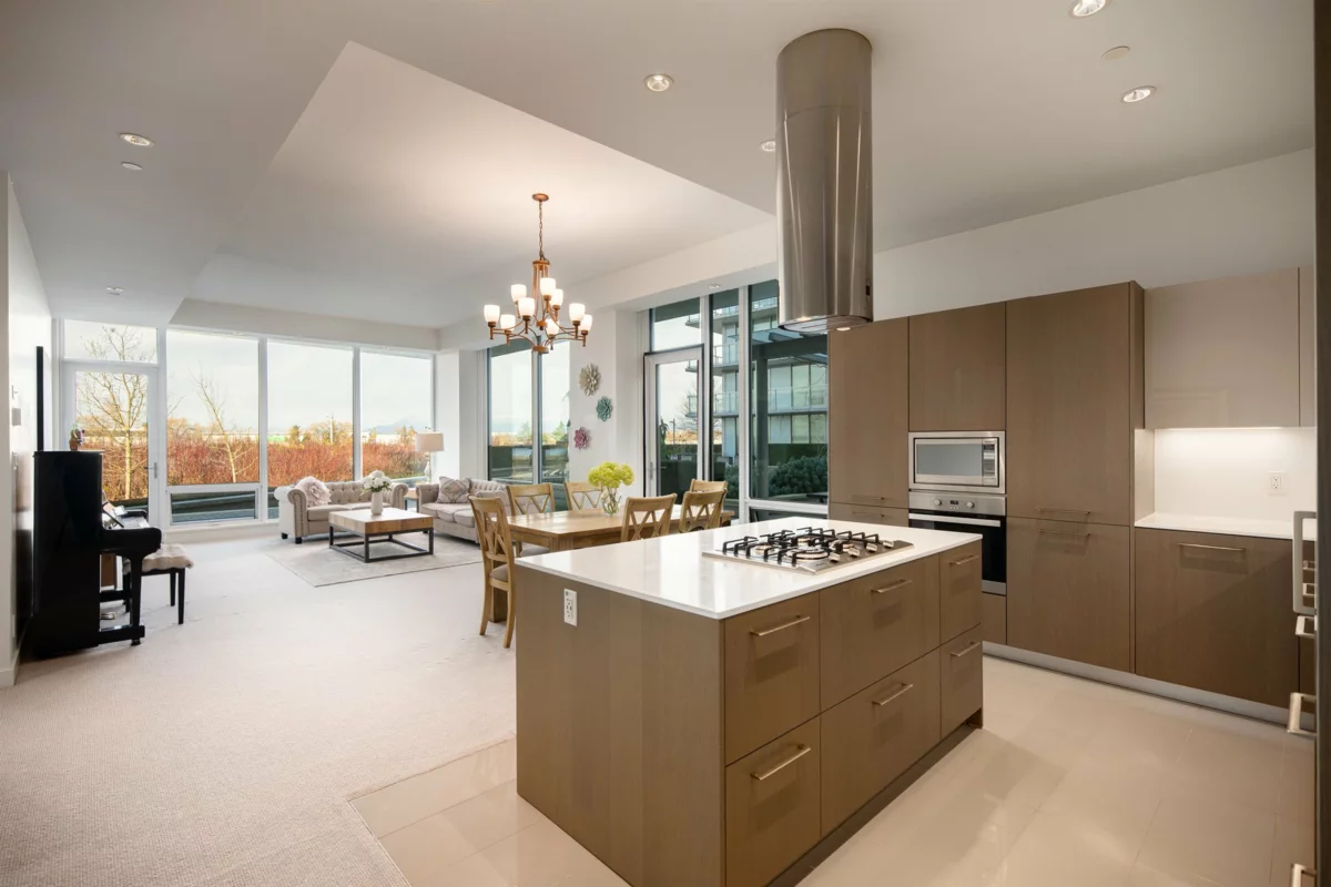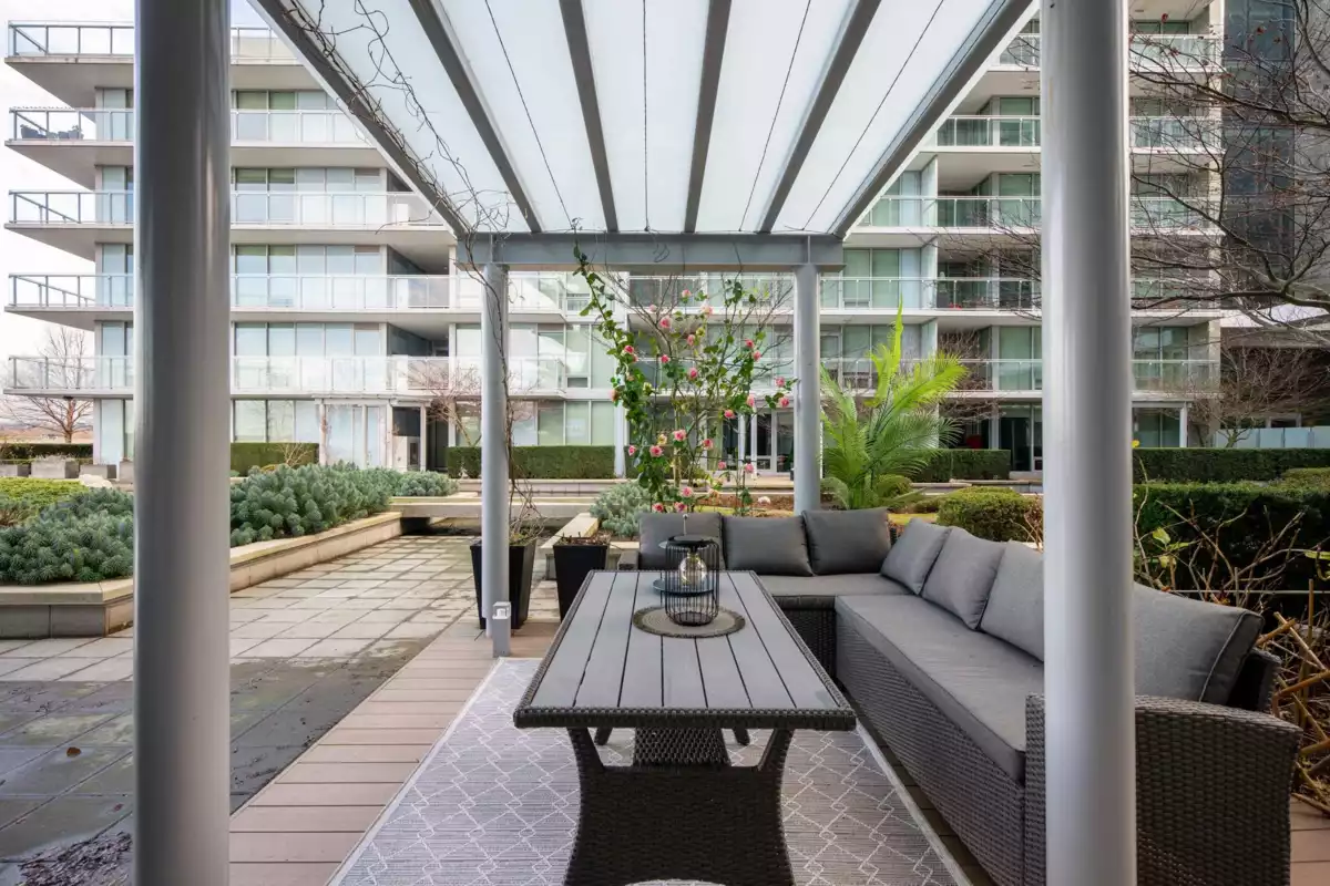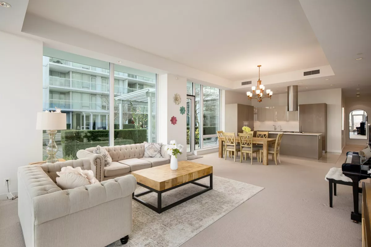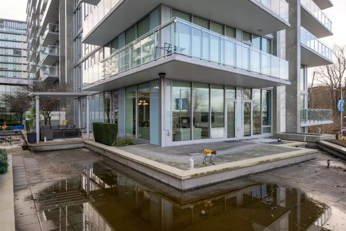 A rare must see piece! Timeless and refined, this coveted 3-bedroom corner residence at River Green showcases exceptional craftsmanship and luxury. A rare offering, it features a private gazebo on a tranquil waterside patio overlooking the serene inner garden, with an expansive 677-sq-ft outdoor area perfect for entertaining and gardening. Inside, soaring 11-foot ceilings flood the home with light, complemented by elegant Italian cabinetry and premium Miele appliances. A generously sized den accommodates a queen bed, adding flexible living space. Residents enjoy world-class amenities—including a 24-hour concierge, indoor pool, club lounge, and private cinema—plus breathtaking views of the manicured garden and fountain, the Fraser River, mountains, and unforgettable sunsets.