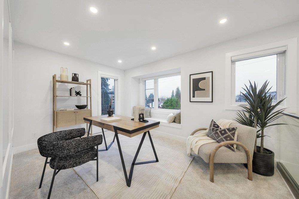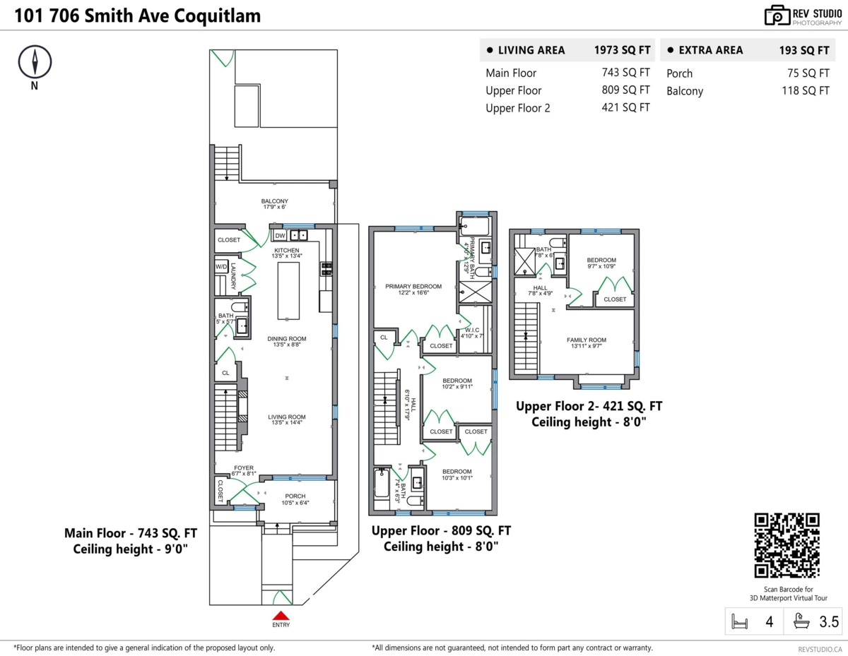 Experience the elegance of this high-quality, new-built 4 bed/3.5 bath, 1973 sq ft Side by Side Triplex Unit 101 This sunny, south-facing home offers 3 levels of well-designed luxury living on Smith Ave, Coquitlam. Main floor features hardwood, 9 ft ceilings, open living/dining, a high-end kitchen with quartz counters, pantry, and a large balcony. The second level offers a primary bedroom with luxe ensuite + 2 bedrooms and a full bath. The top level includes a family/office space + 1 bedroom plus full bath. Tasteful finishes: carpet, custom cabinetry, modern lighting, Fisher & Paykel appliances. Heating/AC heat pump + electric baseboard. Huge Crawl space storage. Two parking W/ EV Charger. Steps to SkyTrain. 2/5/10 Yrs Warranty Open House Saturday January 17 th 2–4 PM