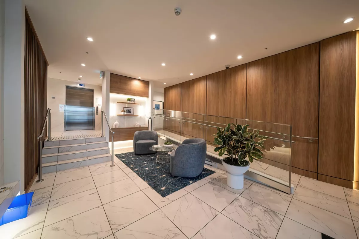 Azure 2 Garden suite. Rarely found, this 760 sq ft one-bedroom plus one den apartment is on the ground level with a 100 sq.ft private patio. 9' high ceiling. Crafted kitchen features soft-close full-height cabinetry ,low maintenance quartz countertops with contemporary, porcelain-tile backsplash, Fisher&Paykel refrigerator, morden hood fan by Broan, 24" Energy Star dishwasher by KitchenAid,etc. Spacious walk-in closet in the bedroom, in-suite wireless security system. Fully equipped fitness room and yoga studio. Warm and inviting amenity room. Guest suite for out-of-town vistors. It is called home. Open house on May 4/Sun 2-4 pm.