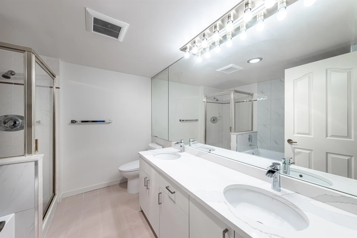 SPECTACULAR VIEWS from every room 1 bed/1.5 bath home with UNOBSTRUCTED mountain and Deer Lake views. Generously sized 912 Sq, thoughtfully upgraded fully newer kitchen appliances, cabinets.Bland New Bath tub and two sinks countertops on masterdom.East facing unit features a functional floor plan with separate kitchen/ eating area, expansive living/dining areas (ideal flex space for home office), generous sized bedroom and huge ensuite w/separate soaker tub. Quality built by Bosa EVERGREEN building gives buyers peace of mind with numerous updates including: fully rain screened, re-piping, roof, windows 2009. Plumbing , boiler, lobby 2013.Both elevators replaced 2023.Indoor pool under glass with hot tub,sauna. Located in the heart of Metrotown close to transit, Ecole Marlborough Elementary.