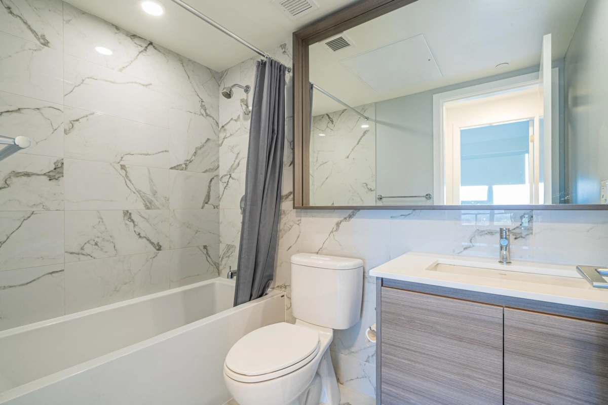 Welcome to Parc Centrale! This exquisite two-bedroom apartment in a concrete high-rise building offers a unique layout and appears nearly new. Built-in sliding doors convert the living room into a second bedroom, and the apartment features Bosch stainless steel appliances, laminate flooring, and 9-feet ceilings. Additionally, the apartment boasts a large, north-facing 135 Sqft balcony with stunning mountain, river, and city skyline views. Amenities include a rooftop terrace, a spacious fitness center, and a conference room. Located in the heart of Surrey, this apartment is within walking distance of restaurants, supermarkets, Simon Fraser University, Kwantlen Polytechnic University, and the Skytrain. One EV parking stall is included.
