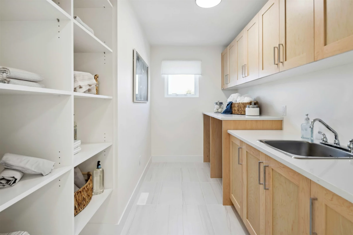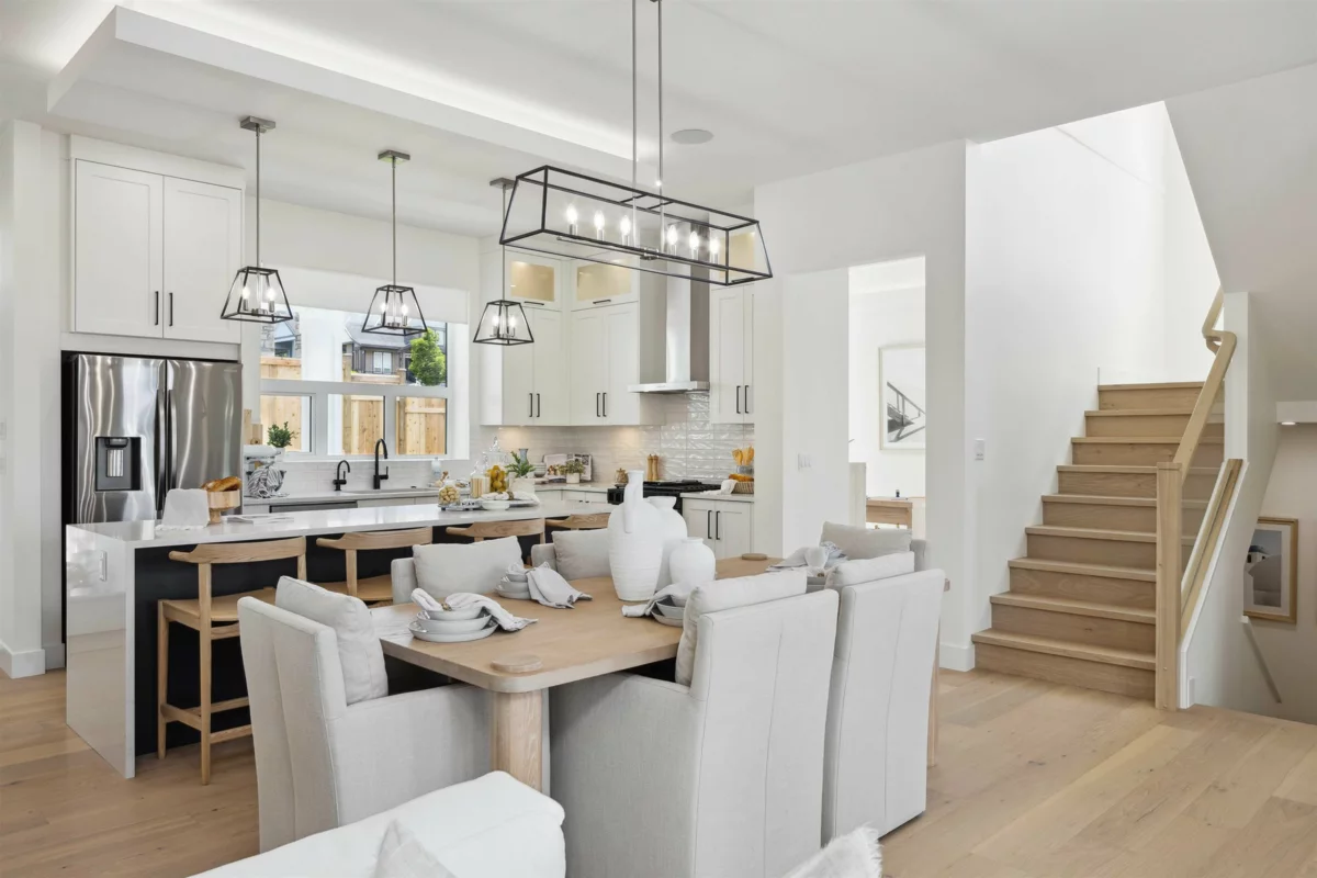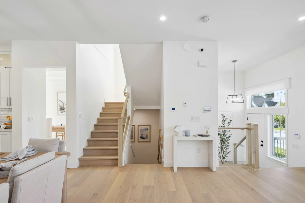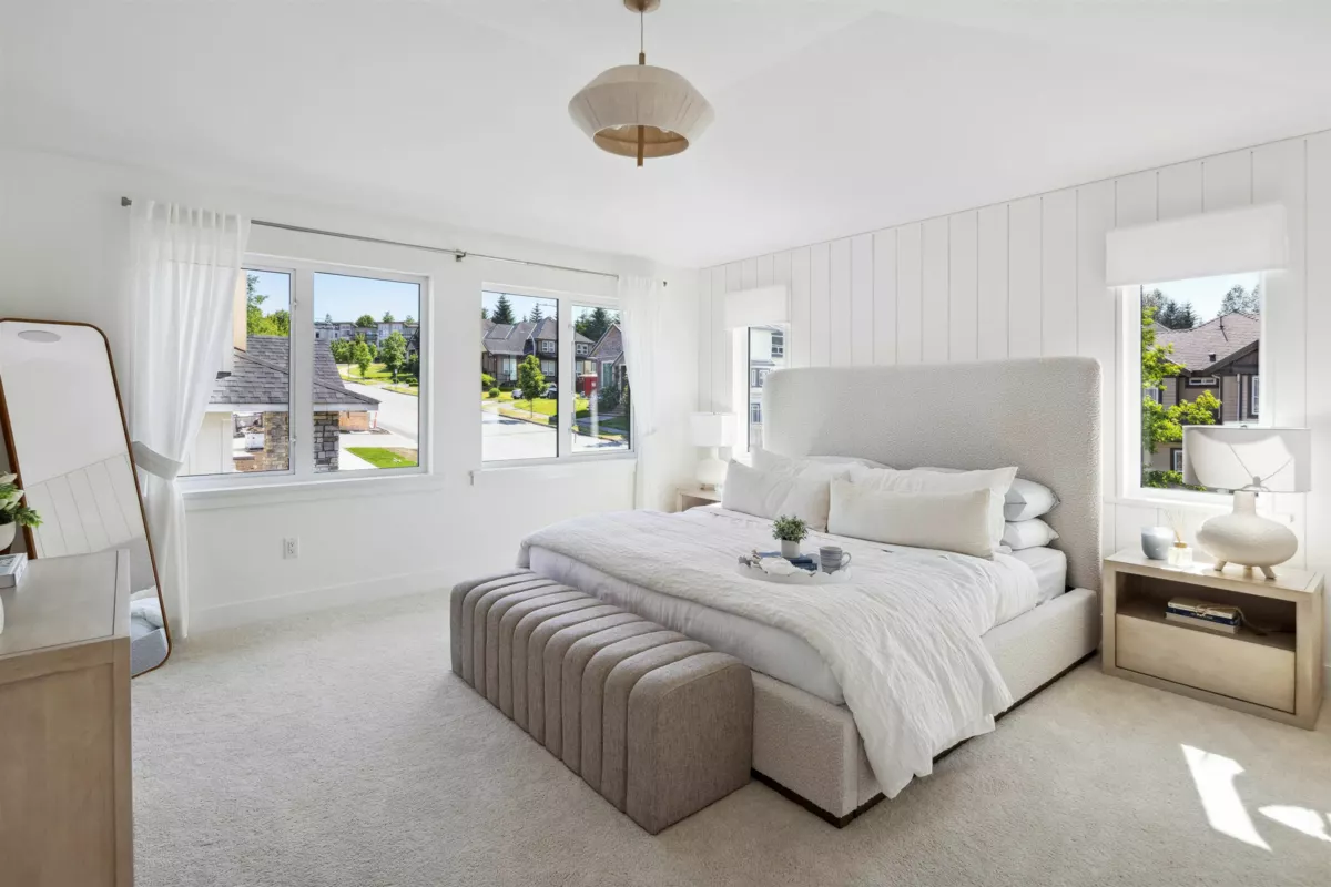 Welcome to Abbey Heights by Foxridge Homes! This 4 -bedroom Bradford plan is located in the Fraser Heights community and available for quick possession. The main floor offers a gourmet kitchen, open-concept living areas, and a versatile flex room. Upstairs has three spacious bedrooms, each with an ensuite. The basement is a fully finished I-bedroom legal suite complete with appliances. Additional upgrades include a heat pump, upper cabinets in the laundry room, EVMS rough- in, a private fenced backyard, and more. Conveniently located near parks, schools, shopping, and recreation.