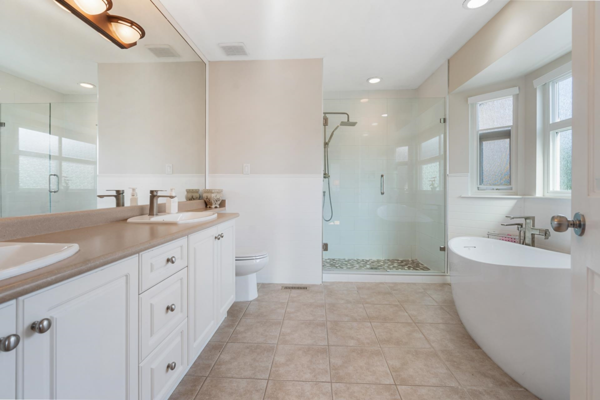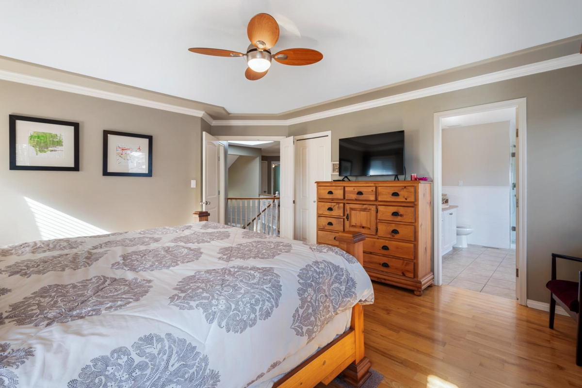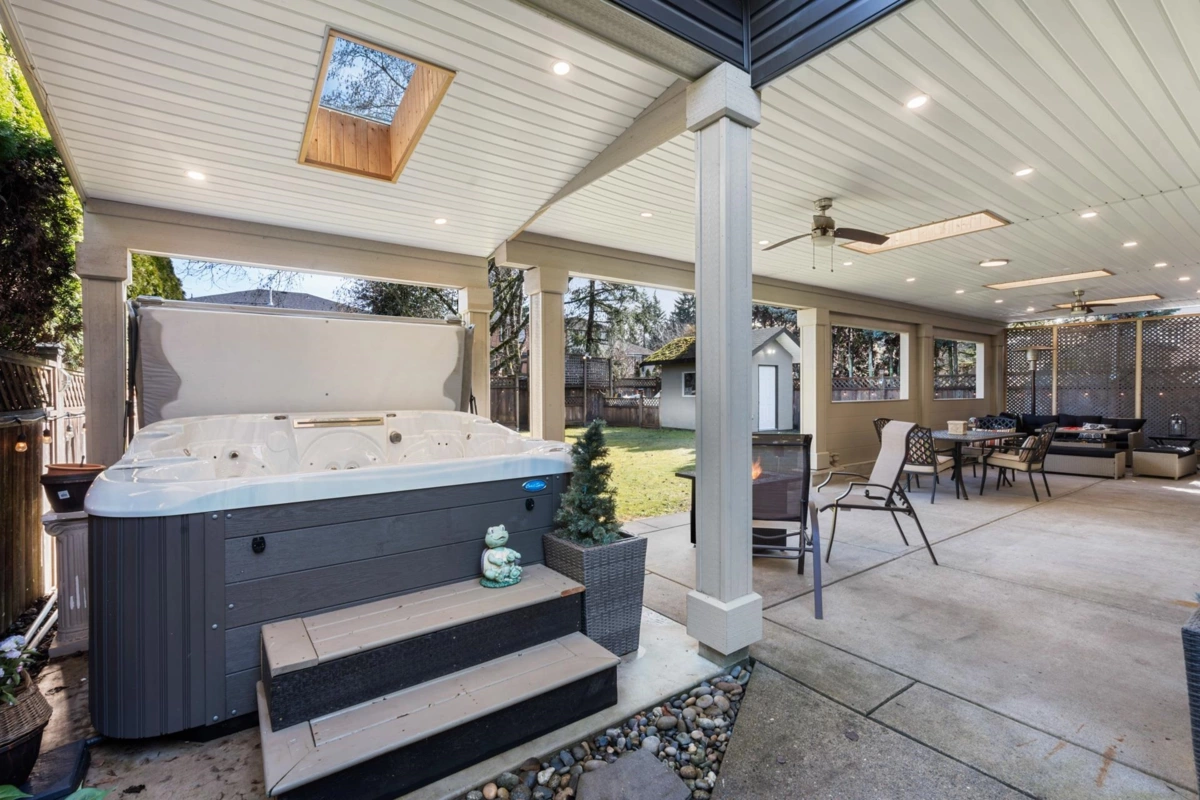 Experience luxury living in this meticulously maintained 2,835 sqft, 5-bedroom + den, 3-bath home in prestigious Fraser Heights. Upper floor boasts primary bedroom with spa inspired ensuite & walk-in closet with 4 additional spacious bedrooms. Tucked away on a quiet cul-de-sac, just steps from Pacific Academy & Bothwell Elementary, this exquisite residence boasts rich hardwood floors, a chef-inspired kitchen w/ large island, s/s appliances, and elegant gas fireplaces. Newer vinyl window with A/C ensure comfort during the hot summers. The show-stopping 806 sqft covered backyard retreat with hot tub is perfect for year-round entertaining. Quick access to Hwy 1, transit, and shopping, this is a rare opportunity to own a home that blends sophistication with everyday convenience.