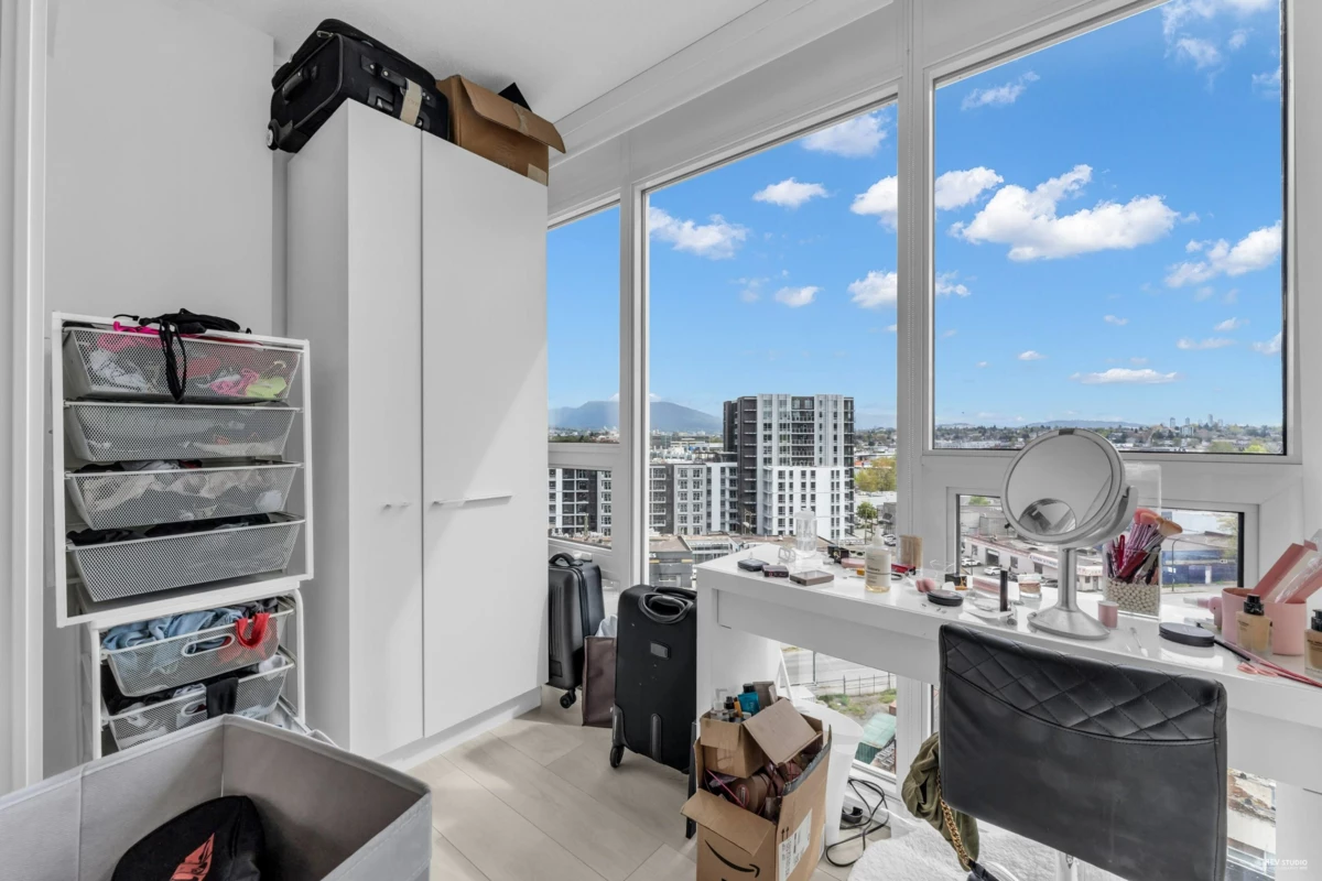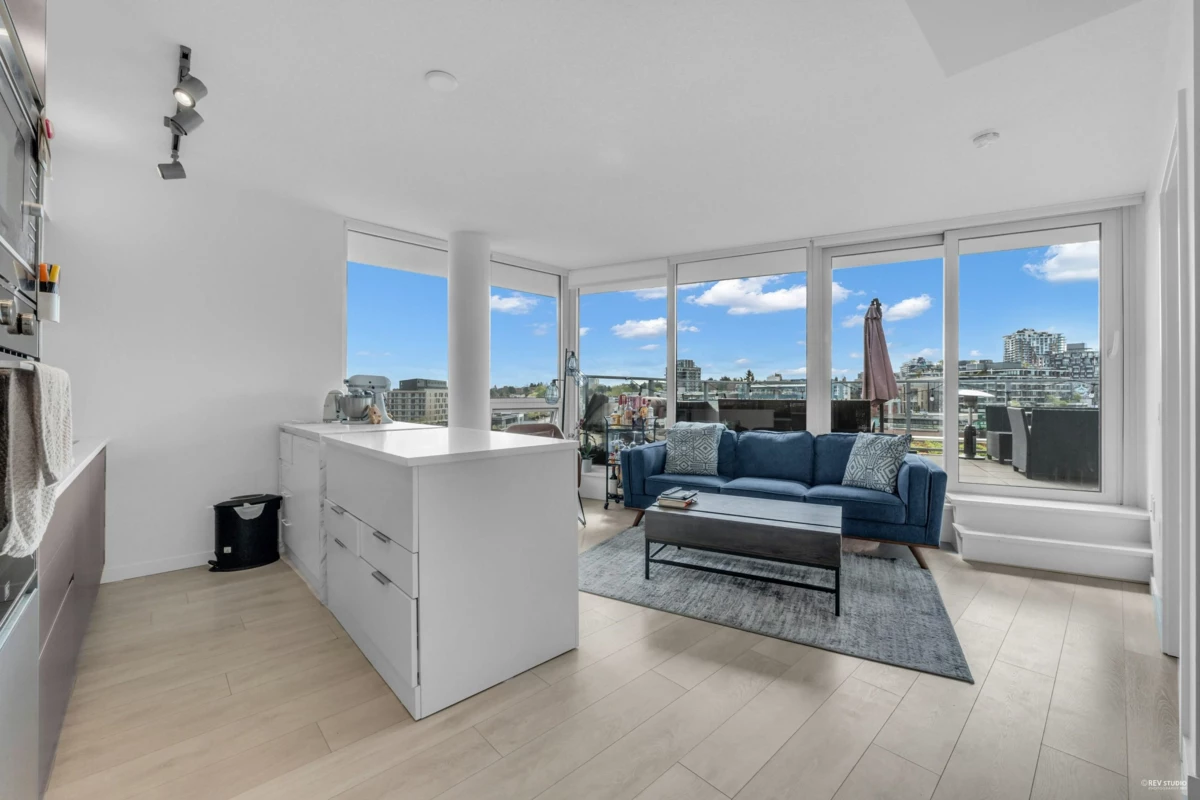 PRICED UNDER ASSESSMENT! Olympic Village area. INCLUDES 2 PARKING and a spacious 269sf patio-ideal for relaxing or entertaining. Best-priced 2 bed + den + sunlit solarium that extends from the bedroom. Not all homes have a solarium perfect as an office or pet space. Bright, efficient layout with modern kitchen, high-end appliances and air conditioning. Only 4 years old with 2-5-10 warranty remaining. Amenities include a gym, rooftop BBQ and garden plots, and social lounge for large gatherings. Prime location: walk to SkyTrain, downtown, future Broadway Line, and St. Paul's. Walk Score 99, Transit 89, Bike 96. Great for end user or investment. Plenty of visitors parking for your friends and family, and bike storage.