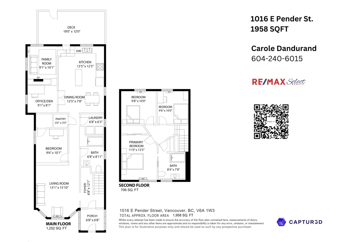 Tucked away in a cherry blossom-lined cul-de-sac, this 1901 treasure has been beautifully renewed for modern family comfort. High ceilings and large windows allow natural light to fill rooms, especially the spacious kitchen w. quartz countertops that is the heart of the home. A thoughtfully-flowing main floor plan places the dining area, family room, office, and laundry close by. Upstairs has 3 bedrooms and spa-like cheater ensuite bathroom with heated floor; 4th bedroom is on the main floor. Features AC/heat pump; huge deck w. natural gas BBQ; and fenced backyard with sunny veggie plots. Legal EV charging on street; concrete pad in backyard ready for parking. Walk score of 94 - close to groceries, restaurants, the new St. Paul's Hospital, and the best ice cream in town!
