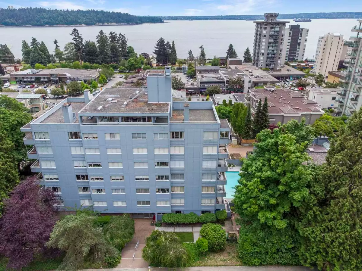 A great treat in the heart of Ambleside. A lovely two bed/two bath apartment, just under 1,000 sq.ft. with a great open south facing patio. Nice views of the ocean, Stanley Park and the Lions Gate Bridge. This is a great building with a really nice community feel. There’s an outdoor pool for these long summer days + parking and storage. An easy stroll down to Ambleside and the seawall. This is a prime piece of real estate in the heart of West Vancouver. Well worth a visit!