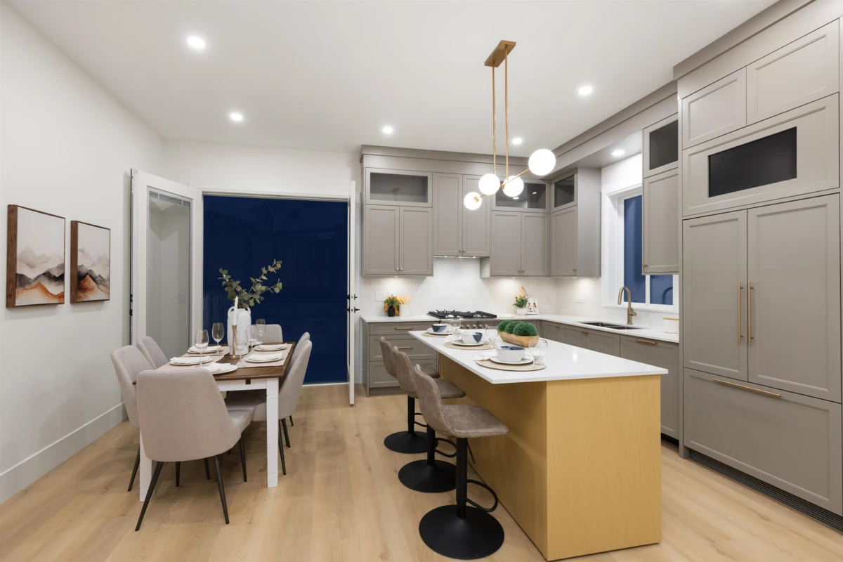 Brand-new half duplex in desirable Grandview built by Woodcrest Homes. Main floor includes a full bathroom and a flexible bedroom that doubles as an ideal home office, plus a stylish Fisher & Paykel kitchen with large island and bright open living/dining space. Upstairs features 3 bedrooms and 2 bathrooms, including a spacious primary with walk-in closet and luxury ensuite. Bonus 1-bedroom legal suite for great mortgage help or in-law use. Steps to Ta’talu Elementary and minutes to Grandview shops, restaurants, aquatic centre, and highway access.