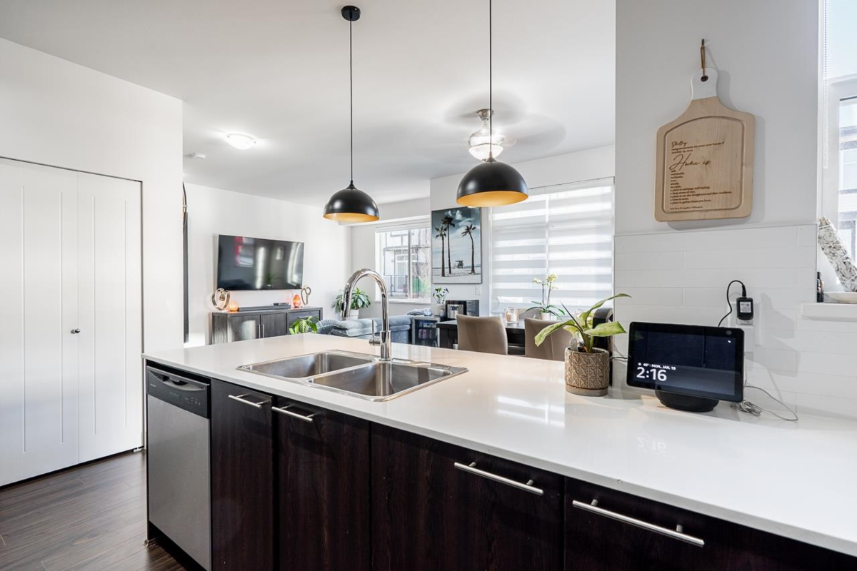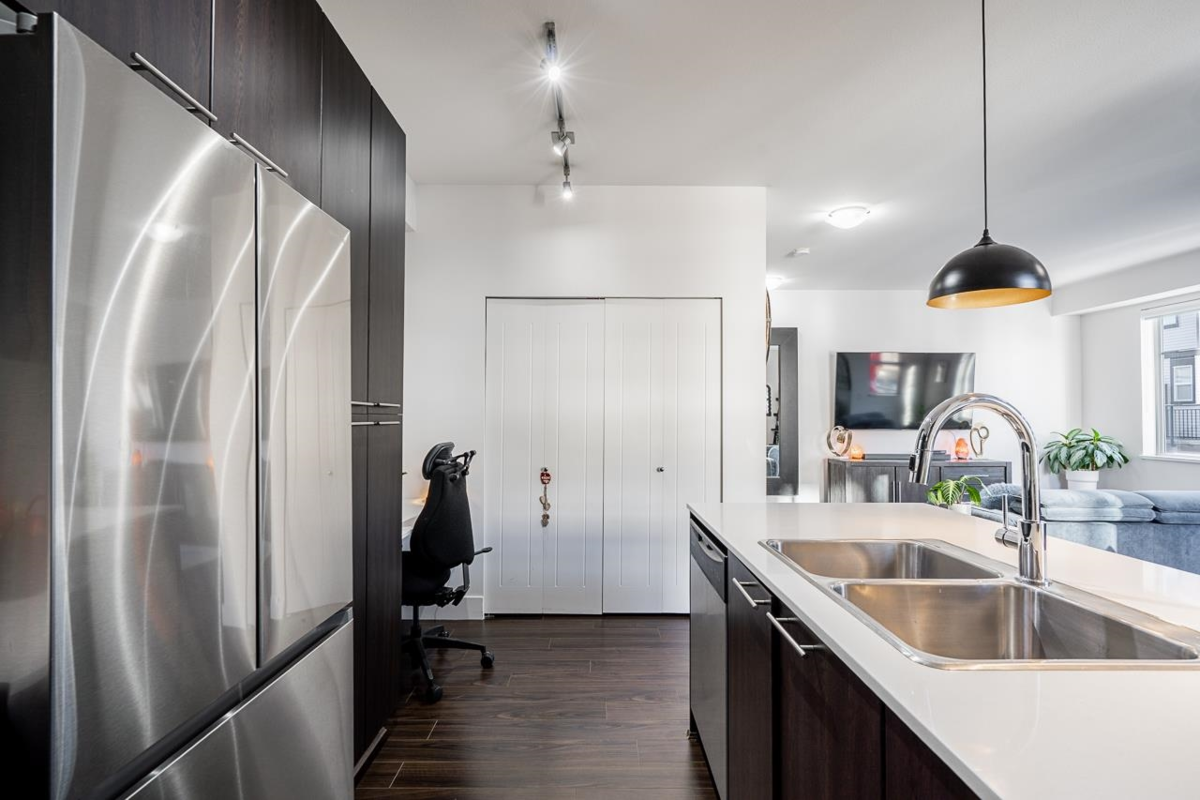Welcome to The Grove! Rare corner-unit townhome with a double side-by-side garage featuring 2 bedrooms and 2 bathrooms. Bright and spacious layout with extra windows creates a more open, square footprint than typical units. Modern kitchen with quartz countertops, stainless steel appliances, and ample cabinet space. Enjoy your private balcony—perfect for BBQs and fresh air. Located next to Katzie Park, steps to the complex pool, and a short walk to Katzie Elementary. Outstanding amenities include a 9,100+ sq ft clubhouse, pool, fitness centre, movie theatre, lounges, hockey rink, and party room. A rare find in a prime location—don’t miss it!