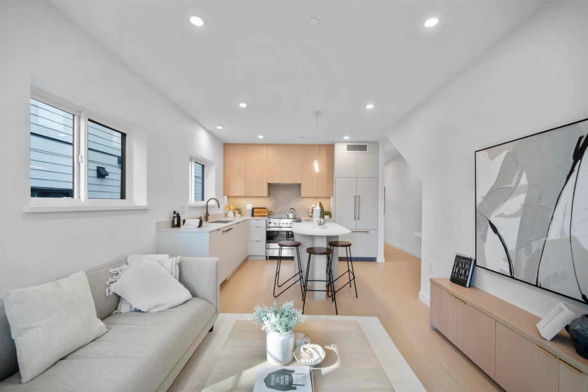 Own a standout garden home at The Grove at 34 in East Vancouver, now fully move in ready and designed for buyers who want space, flexibility, and convenience. This spacious single level layout offers large bedrooms, a bright open living area, and a fully legal lock off suite with its own entrance. Use it for rental income, a dedicated office or studio, visiting family, or open it up and enjoy the entire home as your own. Features include integrated Fisher Paykel appliances, Italian tiled bathrooms, quality finishes, and private outdoor space with room to relax, dine, and entertain. Located on a quiet inside street just steps from parks, schools, transit, and local shops, this home delivers everyday comfort, versatility, and long-term value in a vibrant, connected neighbourhood today.