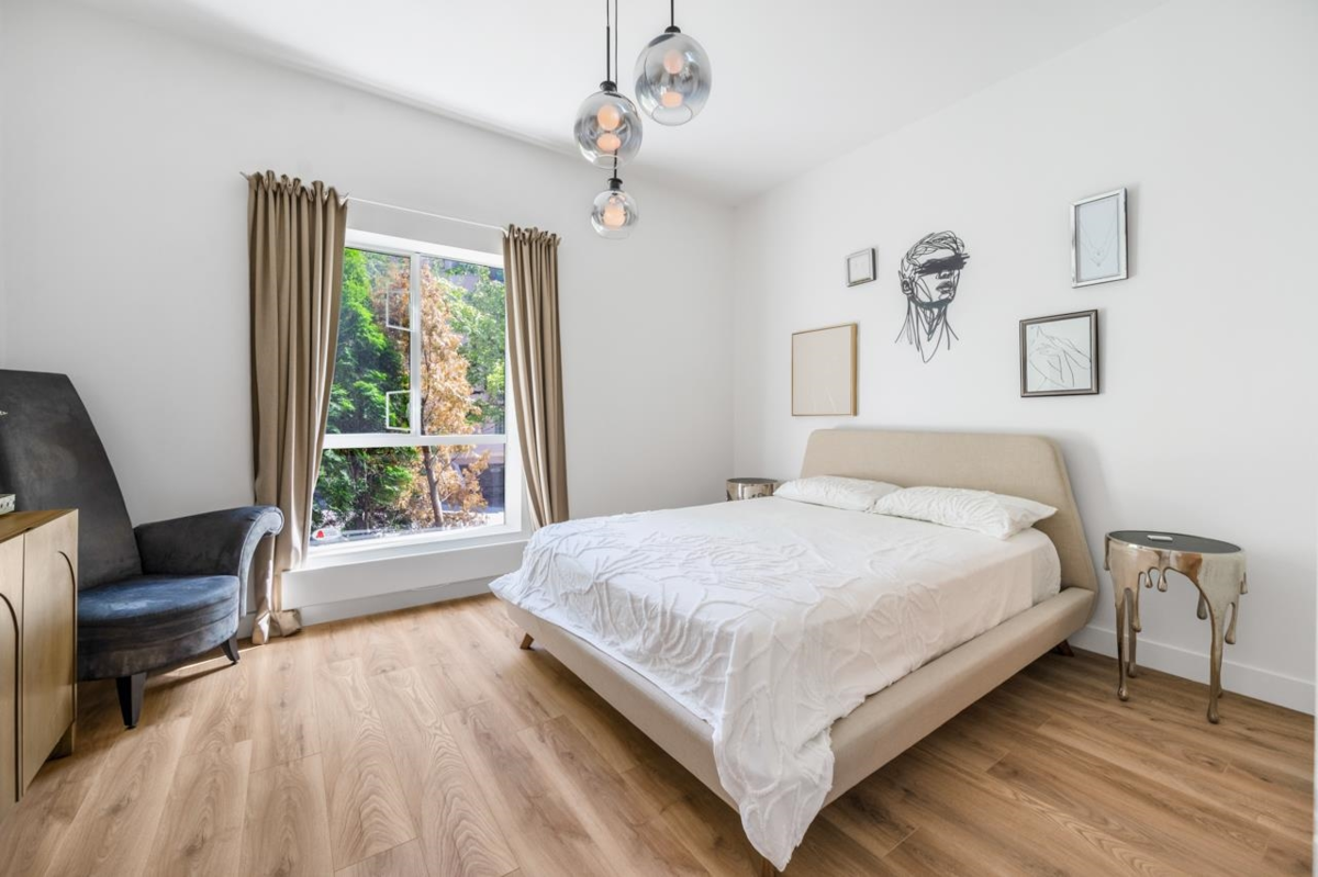 Stunning, fully renovated 2 bed, 2 bath ground floor corner unit with a huge private garden patio in a concrete building with direct SkyTrain access. Features include Euro oak flooring, Lutron smart lighting, spa-inspired bathrooms with imported tile, towel warmers, custom mirrors, and a built-in library. Furniture included. Enjoy secure parking, pool, sauna, gym, and rooftop patio. Located steps from shops, restaurants, daycares, schools, Royal Columbian Hospital, and the Quay. Pet and rental friendly — a rare ground-floor gem in vibrant New Westminster.