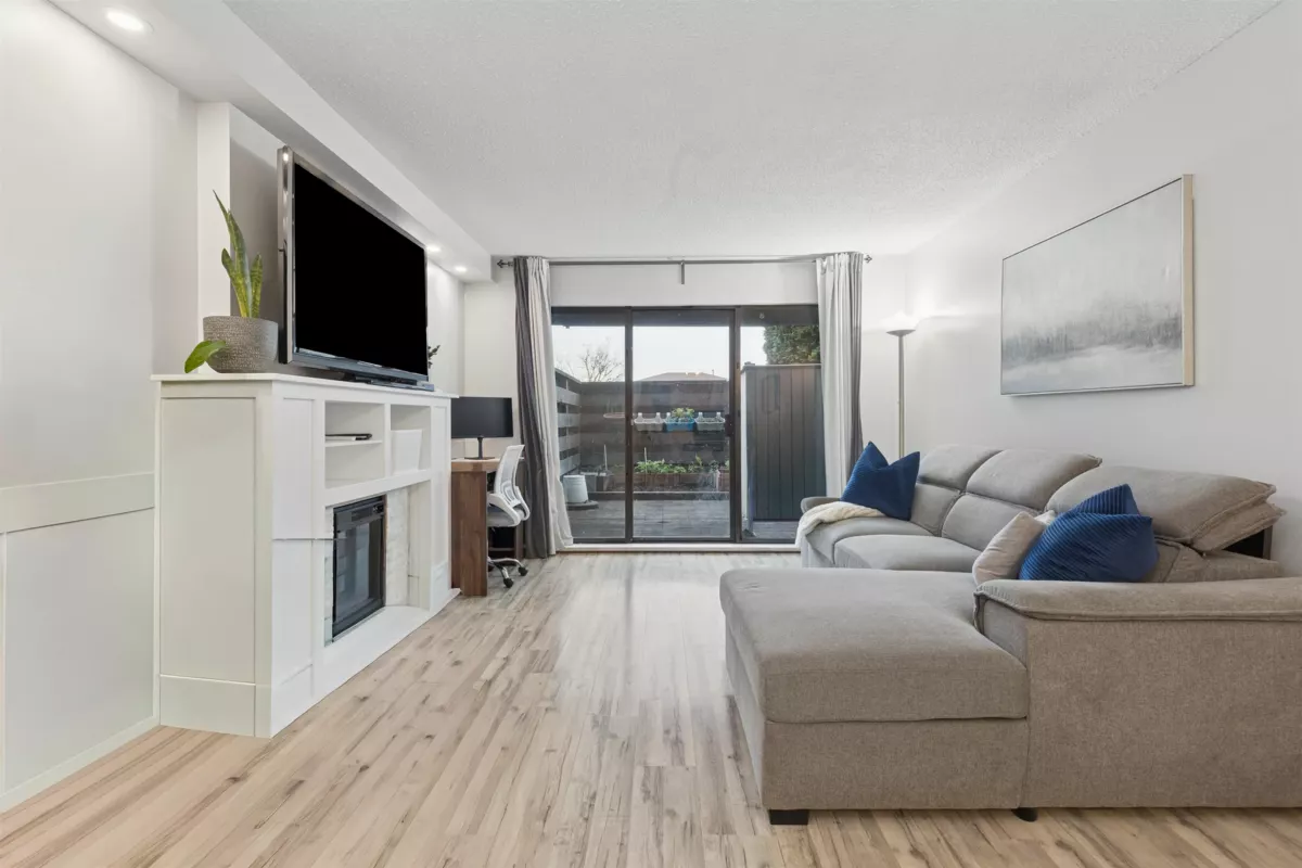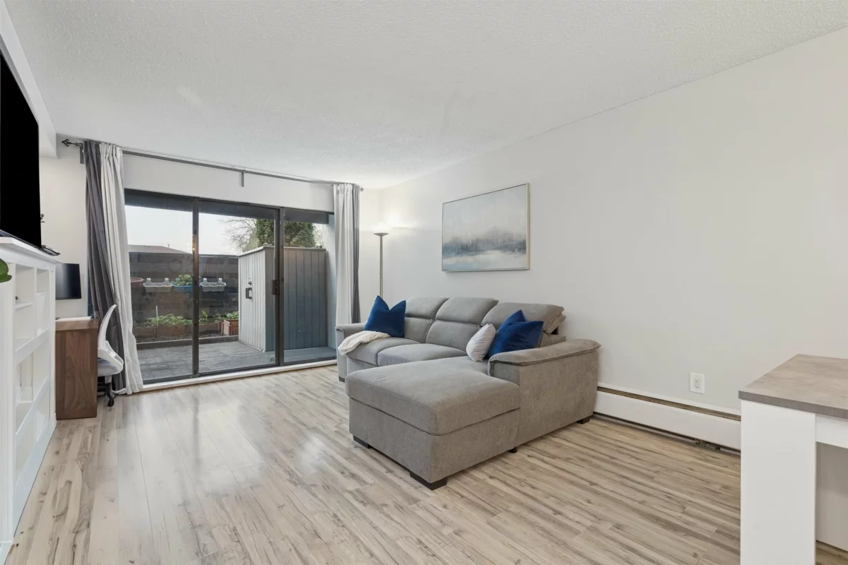 This updated 2 bed/2 bath corner home offers a standout feature buyers are always looking for: a private, separate entry, giving it a more townhome-like feel. You’ll also love the oversized west-facing gated patio 300+ sq ft for true indoor/outdoor living. It’s perfect for morning coffee, gardening, or easy outdoor entertaining. Inside, the layout is bright and spacious with great room sizes, floor-to-ceiling windows, and patio access from multiple rooms. Cozy up by the electric fireplace and enjoy the convenience of parking and storage. Applegreene residents enjoy The Apple Core amenities: indoor/outdoor pools, hot tub, sauna, gym, clubhouse, games room, library, and guest suites. Steps to Seafair Shopping Centre, schools, parks, and everyday essentials. Open Sat/Sun 2-4 or by appt.