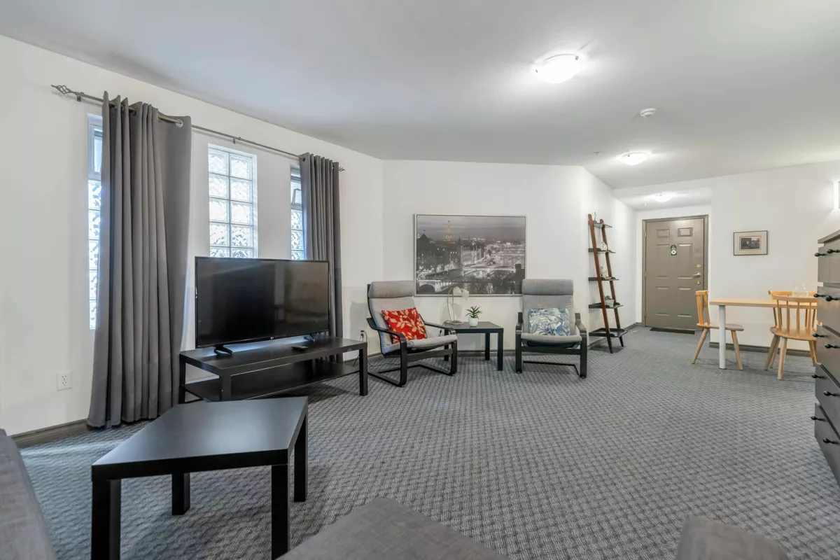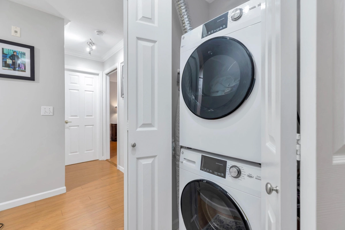 Bright, happy and move-in ready! Welcome to this 2 bed, 1 bath, 1 parking gem with a sunny patio, perfect for morning coffee or evening relaxation. The space feels bright and spacious with a Galley style white kitchen, brand-new washer and dryer, fresh paint throughout and sleek electric blinds for effortless living. Cozy up to the gas fireplace in the living room, then step outside and enjoy being steps to town-shops, cafes and daily essentials right at your doorstep. Clean, modern and full of good vibes - this is easy living at its best! BONUS guest suite upon request and a small fee.