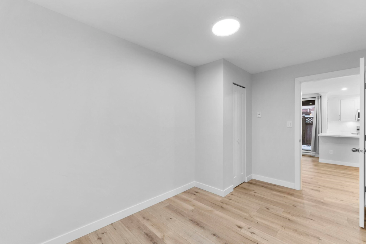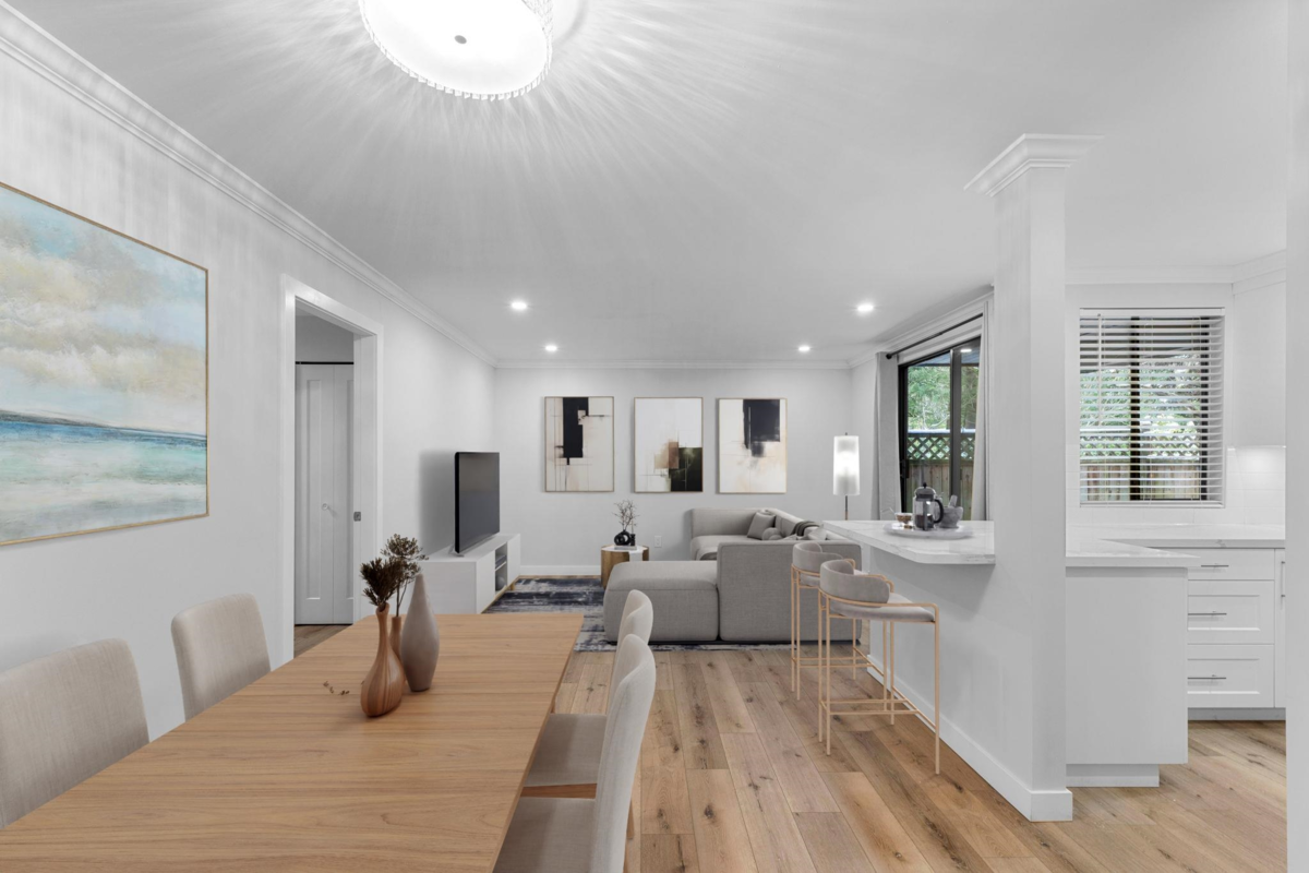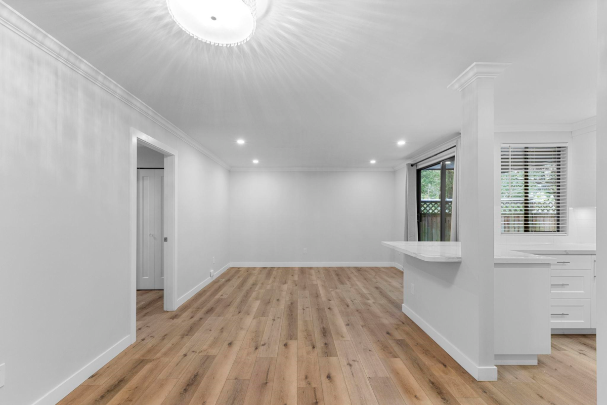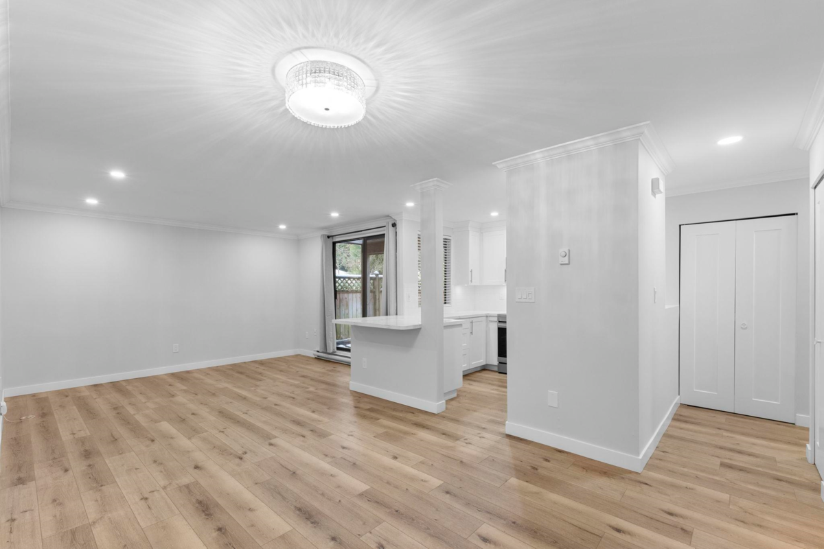 Discover modern luxury in this stunning renovated 3 townhouse. Spanning 987 square feet, this home offers a perfect blend of style, comfort, and convenience. Elegant luxury vinyl flooring throughout, complemented by stylish new lighting fixtures. The modern kitchen with sleek quartz countertops and top-of-the-line stainless steel appliances. The inviting living and dining area provides ample space for relaxation and entertainment. The newly renovated bathroom offers a tranquil retreat, while the in-suite laundry room adds to the ease of everyday living. A desirable feature for pet owners, this townhouse is pet-friendly, including dogs and has a large ground level patio. Don't miss this incredible opportunity! parking stall 55&103 **OPEN HOUSE Saturday Jan 3rd 2-4pm**