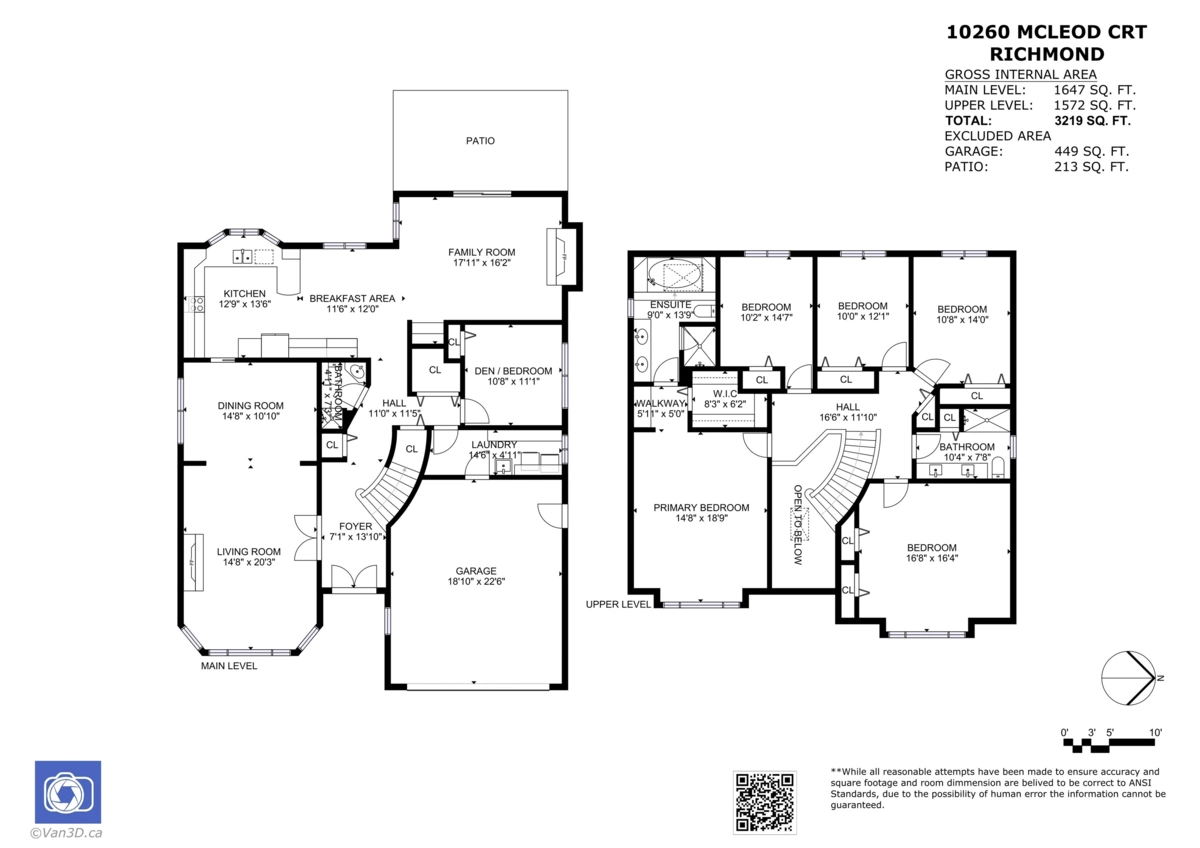 A bright & spacious cozy home with two levels of finishing areas over 3000 sqft, sitting on a big lot of 6700 sq feet, located in a quiet area which has quick and easy access to the highway and major roads around Greater Vancouver. Close to the airport, Costco, shopping, schools and transit. Owner upgraded some parts to make it more comfort, five huge bedrooms and two baths upstairs, one bedroom with full bath downstairs providing you a chance to run Airbnb, homestay; It has a double garage, large driveway and lots of parking. Large flat outdoor area, big garden at the back, very friendly neighborhood, good elementary and secondary school, central location. Must see property.