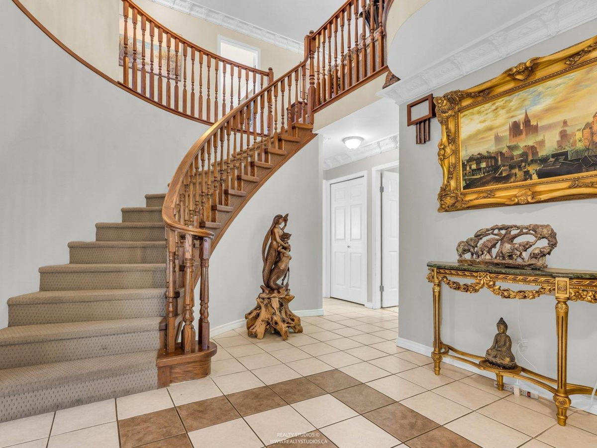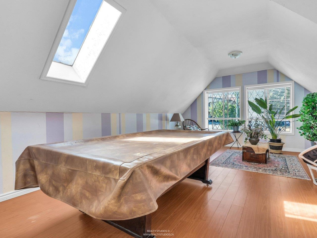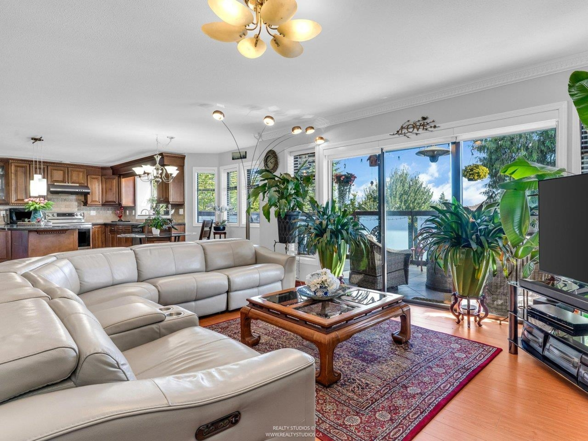 Welcome to this charming Tudor-style home with stunning south-facing views of the Fraser River! This 4700 sq ft home offers both elegance and functionality, featuring a grand foyer with a spiral staircase. Upstairs, you'll find 4 spacious bedrooms, including a master suite with a cozy reading area and fireplace. The kitchenfeature granite counters with stainless steel appliances opens to a large family room. The walk-out basement boasts a 2-bedroom suite with separate entry, plus a 1-bedroom suite, perfect for mortgage helpers. With a beautifully landscaped garden, it's ideal for entertaining. Close to shopping, golf, and restaurants, skytrain and highway!