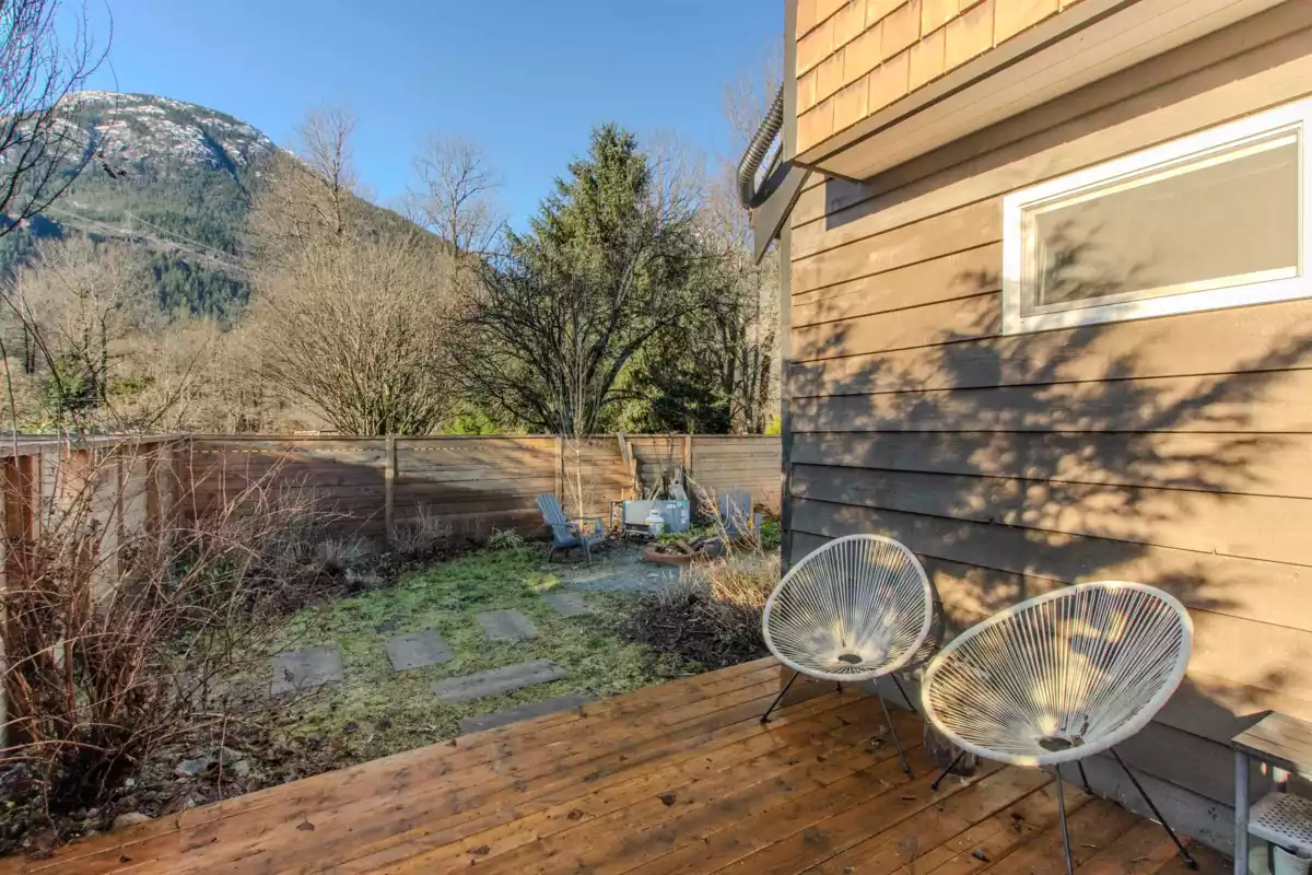 This beautifully renovated, ground-level 1/2 duplex is tucked at the end of a quiet cul-de-sac with no immediate neighbours. Offering exceptional privacy and stunning west-facing mountain views. Boasting an expansive fenced yard - perfect for pets + kids - complete with large shed, extra storage room + gated access from backyard directly to Edgewater Playground & river trails—an unbeatable extension of your outdoor living space. Inside, thoughtful upgrades shine throughout, including a renovated kitchen, modern flooring, updated lighting, enhanced soundproofing between units & more. The bright + functional layout provides comfortable and stylish living in a serene setting. A rare combination of location, lifestyle, and quality updates—this is Squamish living at its best. NO STRATA FEES!