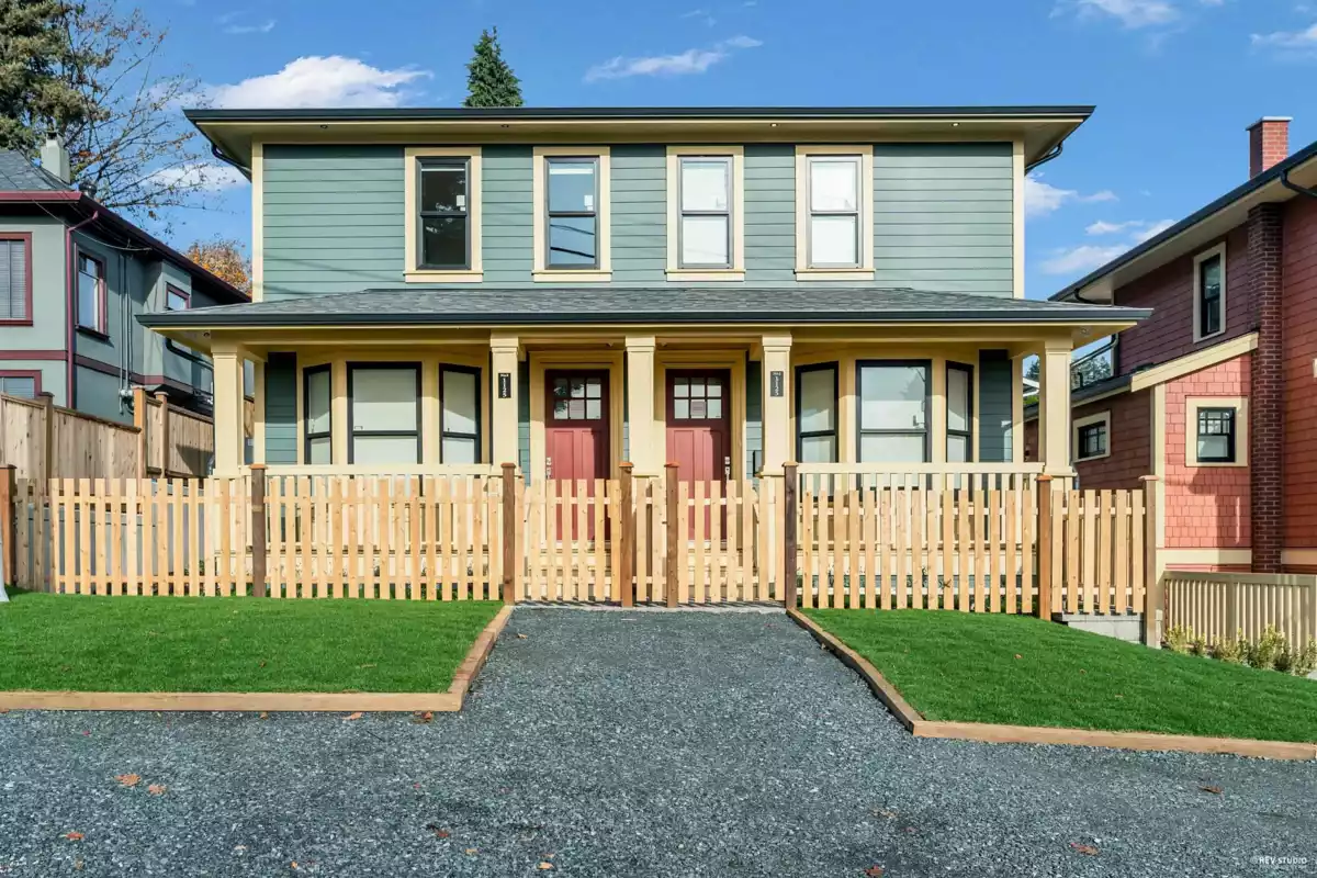 Discover modern family living at its finest in this brand new 5-bedroom, 4-bath luxury duplex — the only DUPLEX in the neighbourhood! With nearly 2,000 sf of bright, thoughtfully designed space, this home offers high-end designer finishes, Fisher & Paykel appliances, radiant floor heating, and a private, fully fenced backyard. Enjoy beautiful CITY & RIVER VIEWS and versatile spaces below for guests, office, or recreation. Steps to the new Rec Centre, church, parks, schools, shopping, and transit, this location delivers unbeatable comfort and convenience. Built with exceptional craftsmanship and peace of mind from a new home warranty — all with NO STRATA FEES.