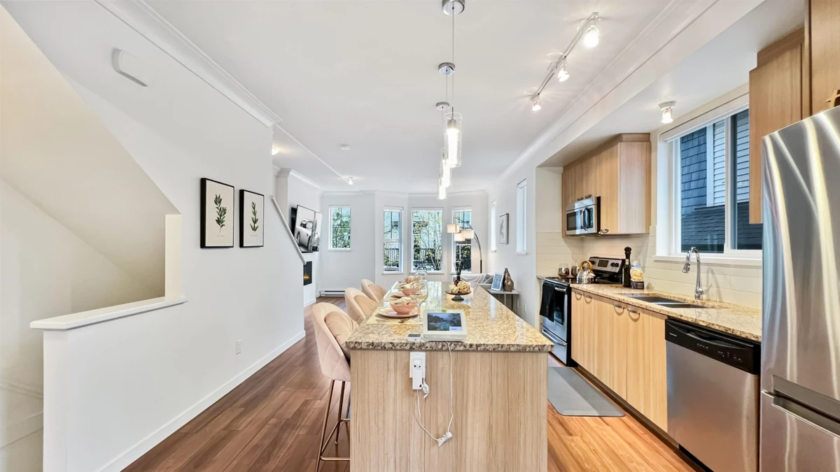 If you love privacy and personal space, this home at ASHBURY HILL is for you! Rare CORNER UNIT backing onto a protected green space with a fully-fenced yard! This is a bright and spacious open concept. This home checks all the boxes, large private backyard, front and back entrances, corner unit, private backyard, large windows, 9' ceilings and a large living space. The gourmet kitchen features stainless steel appliances & granite countertops with a large island. Walk to schools, restaurants, Fresh Street Market, YMCA, and more. Great central location for commuting by transit or car in the very family-orientated community.