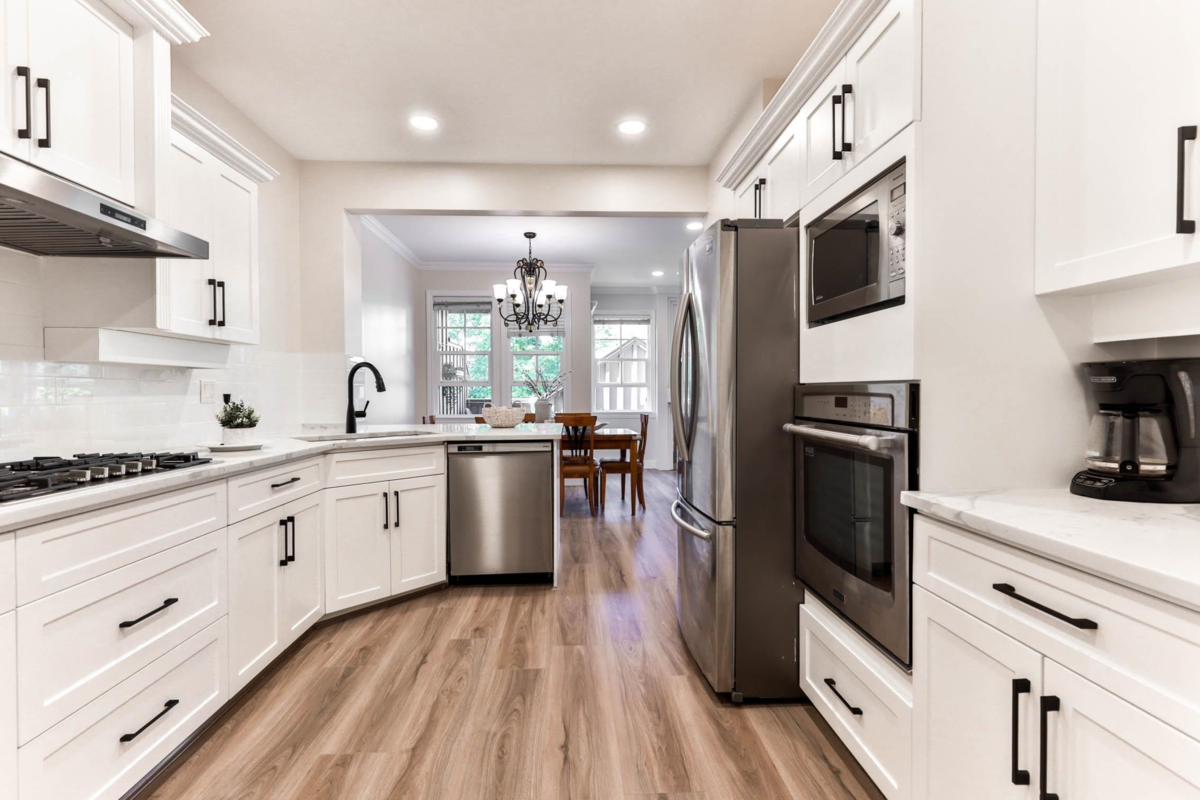THE VILLAGE AT SEQUOIA RIDGE! Coveted END-UNIT in a gated community. Features A/C, double garage + extra-long driveway for 3rd car. Tastefully updated w/ NEW FLOORS, FRESH PAINT & RENOVATED Kitchen (granite/SS). Upstairs boasts a Primary suite w/ VIEWS & luxe ensuite. The finished lower level offers VERSATILITY: A spacious Rec Room currently utilized as a 5th BDRM, plus a private 4th BDRM (windowless) - perfect for a media room, gym, or quiet office. Private patio/garden. Near golf, transit & top schools (Coyote Creek/Fleetwood Park).