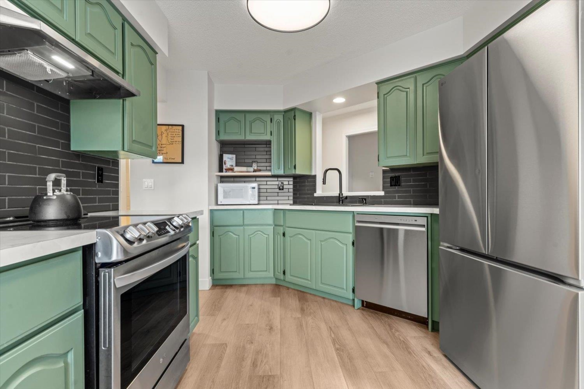 Bright, beautifully updated corner unit offering tons of natural light and a fantastic, functional floorplan. Enjoy fresh paint and new flooring throughout, plus an updated kitchen with refreshed cabinets, new countertops, sink, backsplash, and stainless steel appliances. Ample storage with multiple deep, spacious closets, in-suite laundry, and secure undercover parking add everyday convenience. All ages and rentals welcome. Ideally located just steps from District 1881, Townsend Sports Park, Chilliwack Hospital, and essential grocery shopping — an unbeatable central lifestyle.
