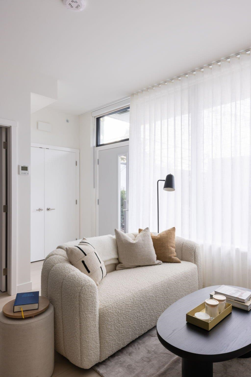 Alina by Strand is a striking 29-storey tower located on a quiet street in West Coquitlam. Completing summer 2025, this near move-in ready, over 16 ft wide 2-bedroom, 2.5-bathroom townhome offers 997 sq. ft. of thoughtfully designed space across two levels. Just steps from Burquitlam Station, it provides easy access to Greater Vancouver while being close to walking trails and shopping centers. The open-concept main floor features a spacious living, dining, and kitchen area with large windows that fill the home with natural light. The primary bedroom includes a private ensuite and walk-in closet, with bonus storage under the stairs. Additional features include a powder room, dedicated workspace, side-by-side washer/dryer, and an EV-ready parking stall. Contact our sales team today to learn