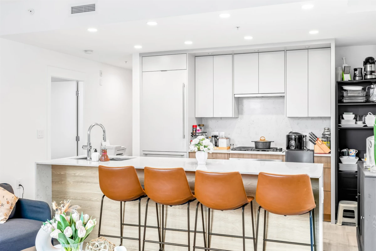 Experience elevated living at Winona on Cambie, an LEED Gold standard luxury Elevated living @ Winona, an LEED Gold standard luxury designed by GBL Architects w/ modern interiors by Portico Design. Unit 103 offers 3bed 2bath w/ a flexible living space & a family-sized kitchen. High-end appliances include: full-size WOLF gas cooktop & wall oven, SUBZERO fridge, & polished Cambria quartz countertops w/ a stylish waterfall edge. The dual-tone cabinetry and ample island seating enhance the culinary experience. Engineered hardwood floors, A/C, a heat recovery ventilator, 9-foot ceilings, roller blinds, and spa-inspired bathrooms add to the luxury. Minutes from Oakridge, QE Park, Marine Gateway, & Langara, and the Marine Drive SkyTrain. School Catchment: Wilfred Laurier Elementary & Churchill.