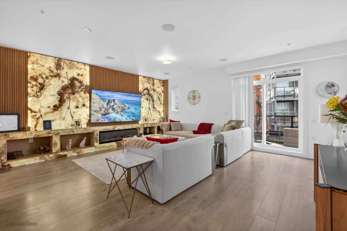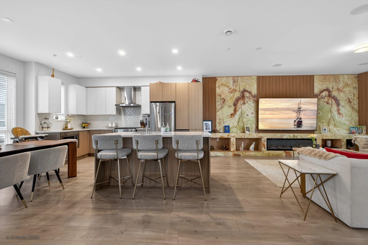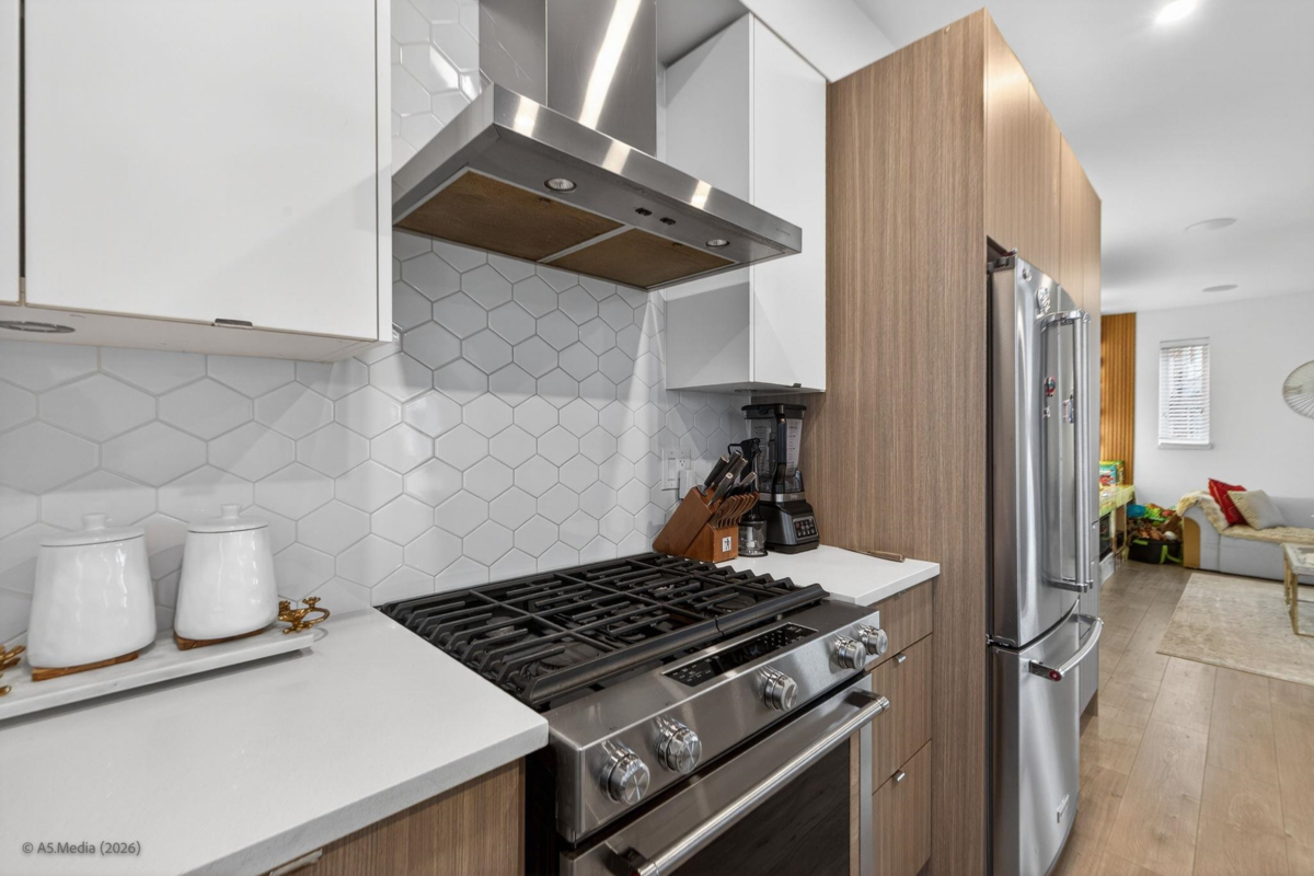 Welcome to the luxurious LUXIA at Yorkson! Comfortable and modern living at its best with this 4 bed, 4 bath END unit. Nearly 2000 sqft. of functional living space. Quality built with unrivalled craftsmanship and high end finishings. $100k worth of developer upgrades including AC, wine cooler, extended kitchen, sound proof walls, onyx fireplace, extra storage, epoxy garage floors & more! Relax in your private yard with a peaceful water feature. Residents can enjoy a private amenity building including gym, and tranquil outdoor garden area. Pedestrian-oriented neighborhood with urban conveniences nearby including schools, shops, restaurants, recreation, & more! Quick access to the highway with an expanding transit network! What an amazing opportunity. Open house Sunday Jan 18 2-4pm.