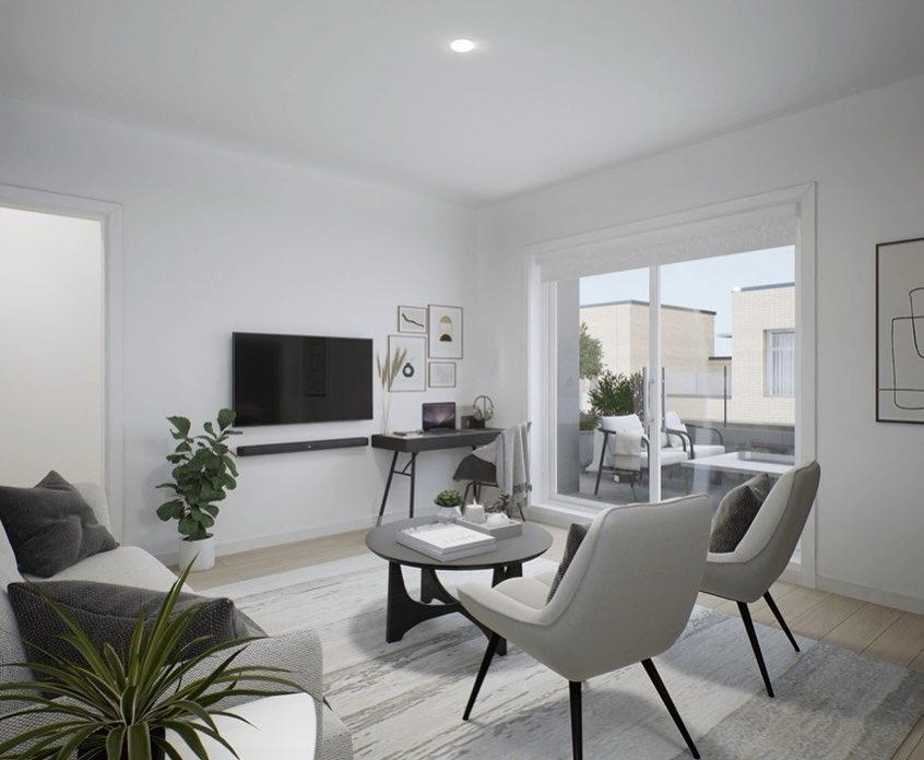 Welcome to Unit A1/A2 at TERZA by NAM Developments. This exceptional live/work unit features a 1 BR layout with a lock-off that can be rented out separately or used as an office or workspace. Located in North Vancouver's Lower Lonsdale neighborhood, TERZA is a boutique collection of urban townhomes within walking distance of parks, schools, recreation, and urban conveniences. Designed to the highest B.C. Building Code Step 4, TERZA homes are net-zero-ready, offering up to 50% energy efficiency and sustainability compared to traditional homes. Luxurious features include air conditioning, heated bathroom floors, rooftop decks, Quartz countertops, Kohler fixtures, sleek roller blinds, and a Fisher Paykel appliance package. Designed by Helen Basharat of BFA Studio Architects.