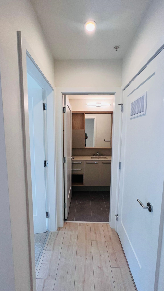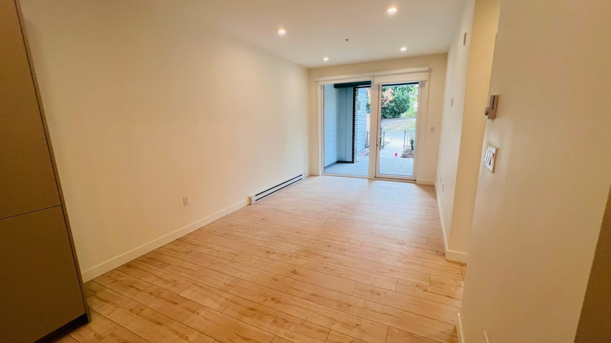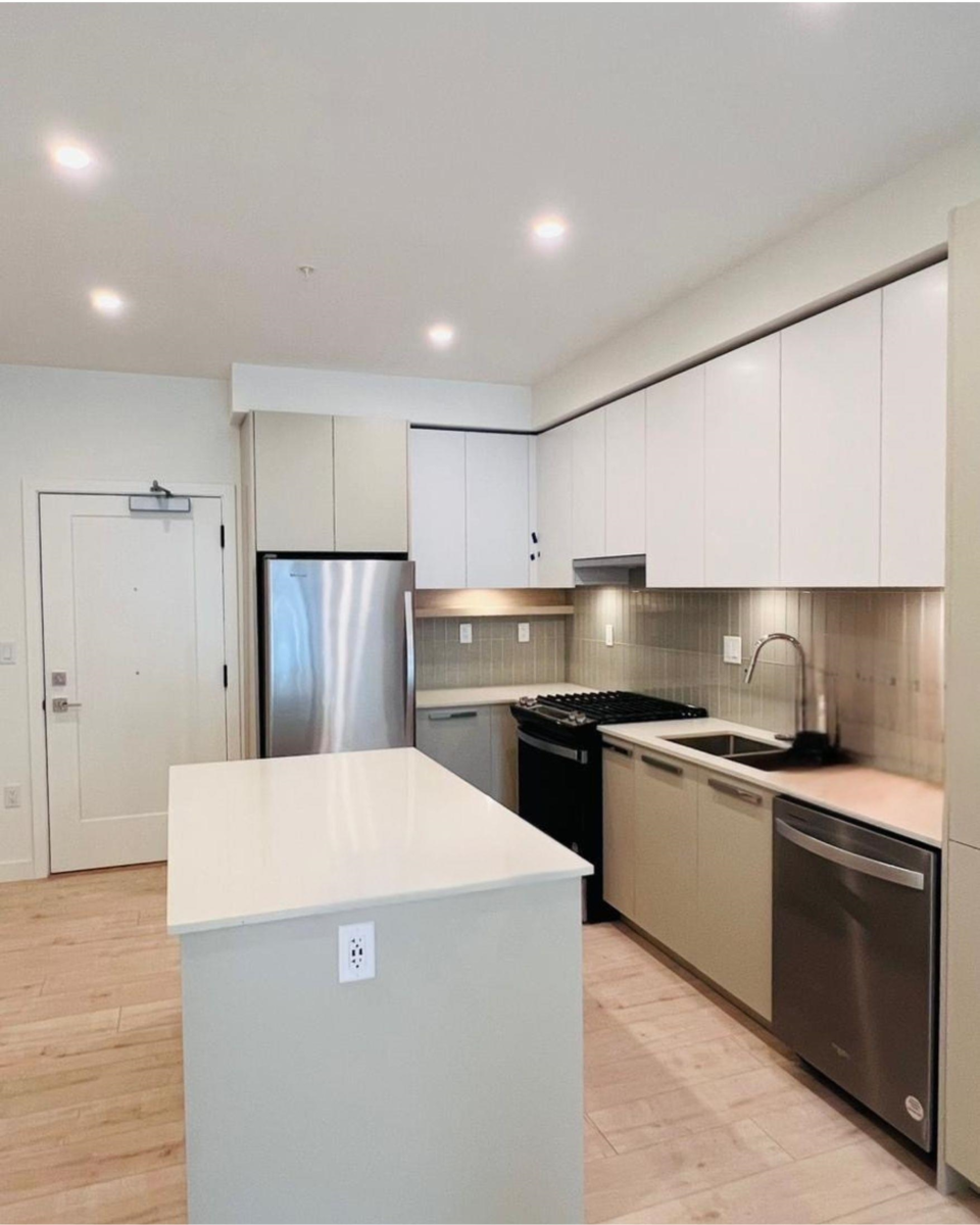Introducing a bright and sunny ground-floor unit in the highly sought-after Silva 1 development, perfectly designed for step-free living—ideal for seniors, first-time buyers, or young couples. This brand-new home in the heart of East Newton features 1 spacious bedroom, 1 versatile den, and 1 beautifully designed bathroom, all enhanced by modern finishes and abundant natural light. Enjoy the convenience of easy ground-floor access and a prime location within walking distance to public transit, Superstore, Costco, Canadian Tire, and a variety of dining options, making this an exceptional opportunity for comfortable and convenient living.