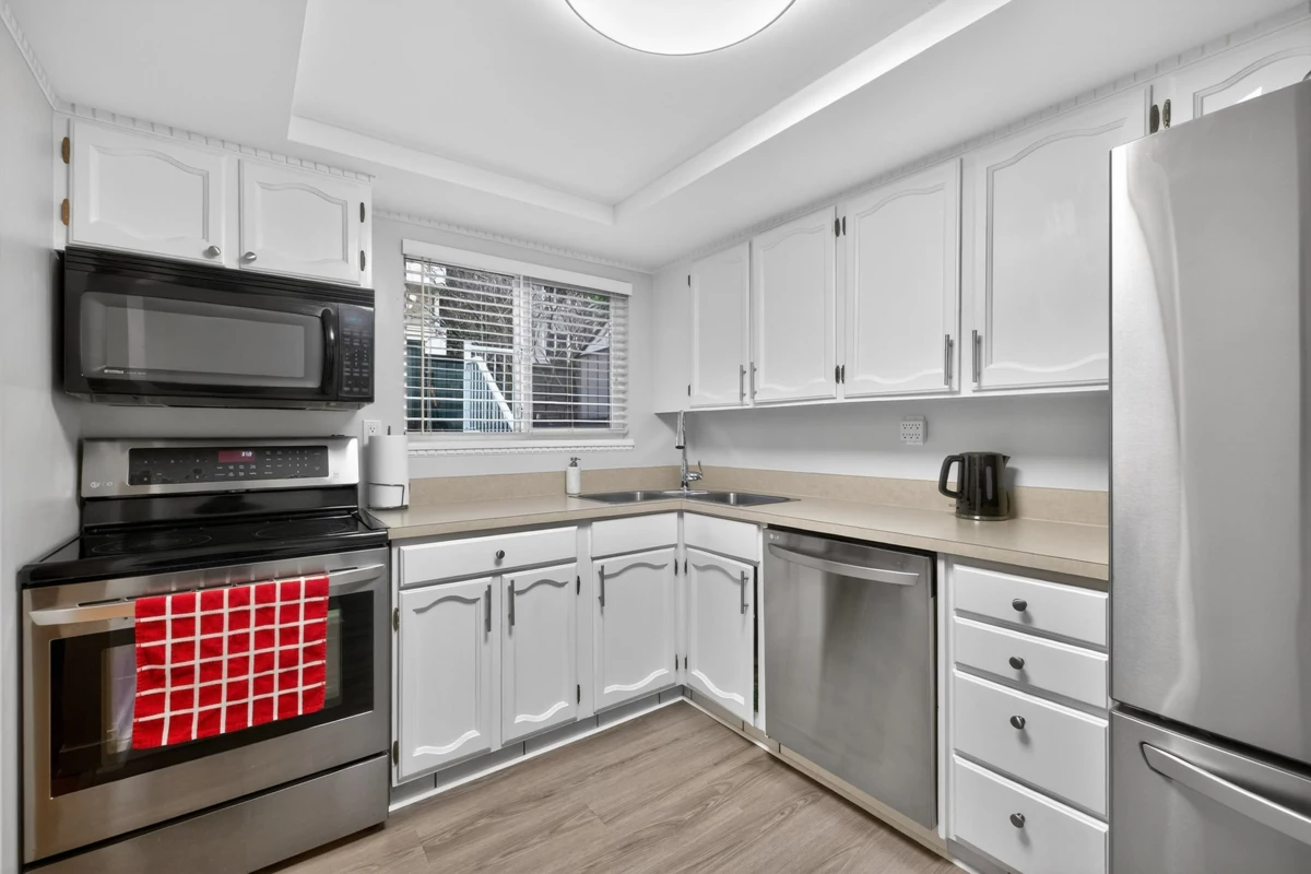 Discover the best of White Rock living at Kent Heritage. This spacious 2 bed, 2 bath ground-floor home offers over 1,000 sq ft of comfortable living plus a rare, massive 600+ sq ft private wrap-around patio — perfect for gardening, entertaining guests, or simply relaxing in the sunshine. The home features NEW laminate flooring in both bedrooms, a fully renovated ensuite, and updated main bathroom with new flooring, vanity, and toilet. Freshly painted throughout, this unit is truly move-in ready. Enjoy unbeatable convenience with restaurants, shops, transit, and everyday amenities all within walking distance, and just a short stroll down to the beach. A fantastic opportunity in one of White Rock’s most desirable communities. Bring your pets, 2 are allowed. Open House Jan 31/ Sat 2 to 4pm