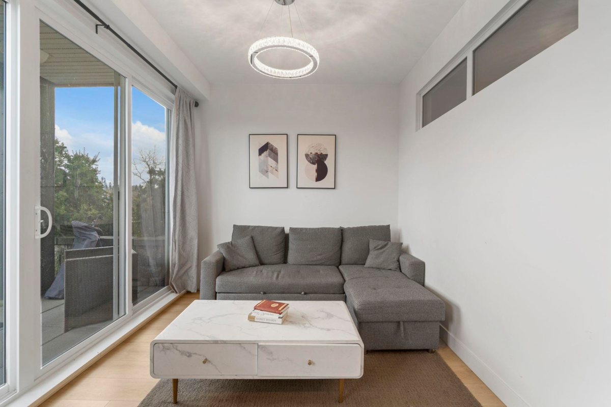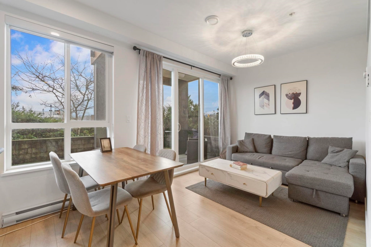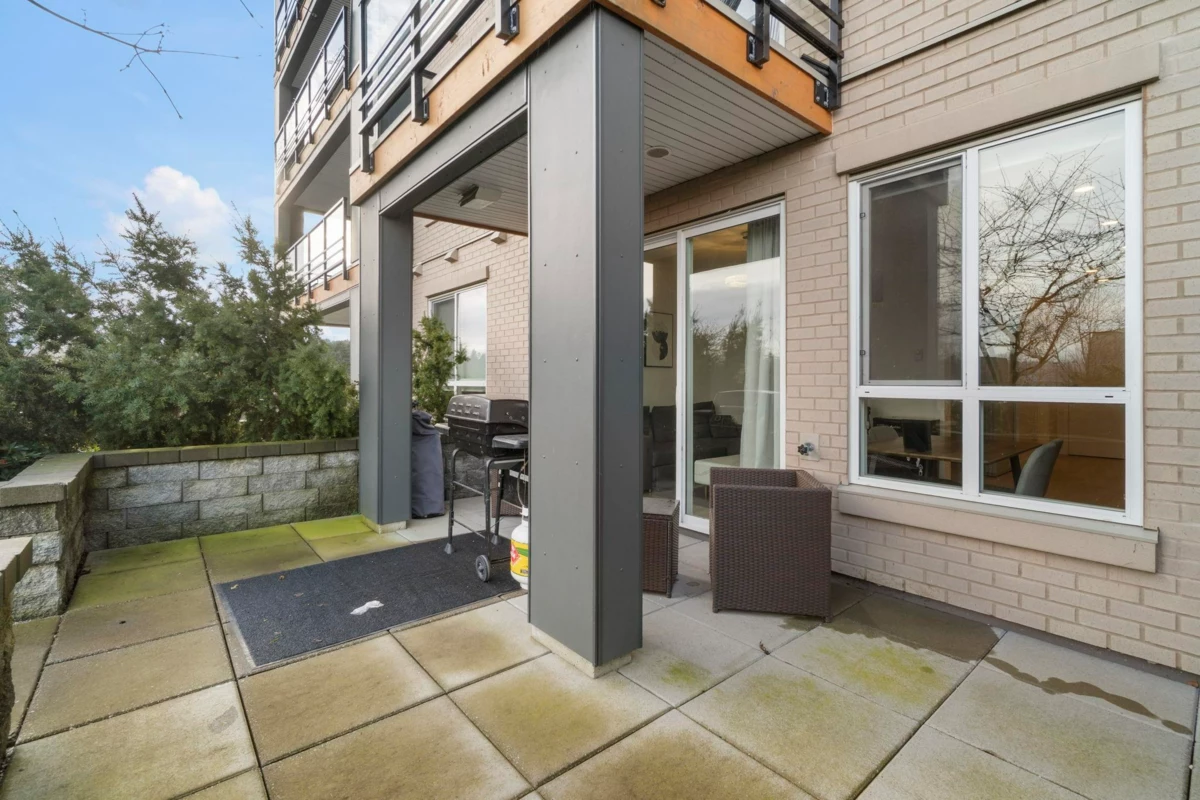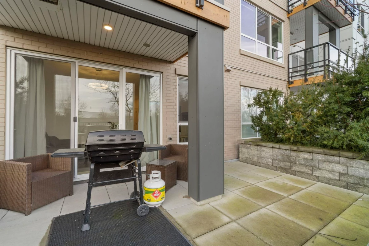 Ground-level 1-bedroom with a huge patio extending your living space outdoors. Facing green space and the TM mall. Efficient floorplan with no wasted space, high ceilings, oversized windows, and bright open-concept living. Modern kitchen with stainless steel appliances, quartz countertops, and sleek cabinetry. A bedroom with a large closet. Private patio Ideal for pet owners and anyone who values privacy and convenience. Residents enjoy The Nest Clubhouse with a fitness centre, lounge, meeting rooms, outdoor seating, and BBQ. Minutes to Tsawwassen Mills, parks, beaches, ferry terminal, major routes, U.S. border, and YVR. Quiet, well-connected community. The water park and golf course are very close. Perfect for investors, FTHB and downsizers.