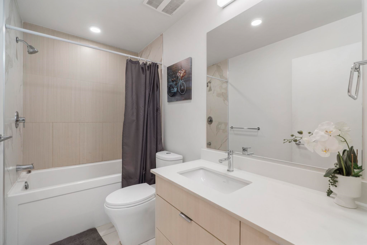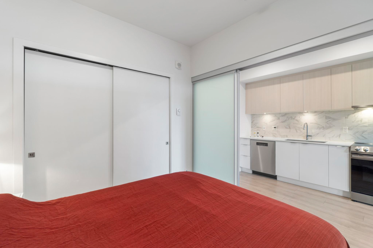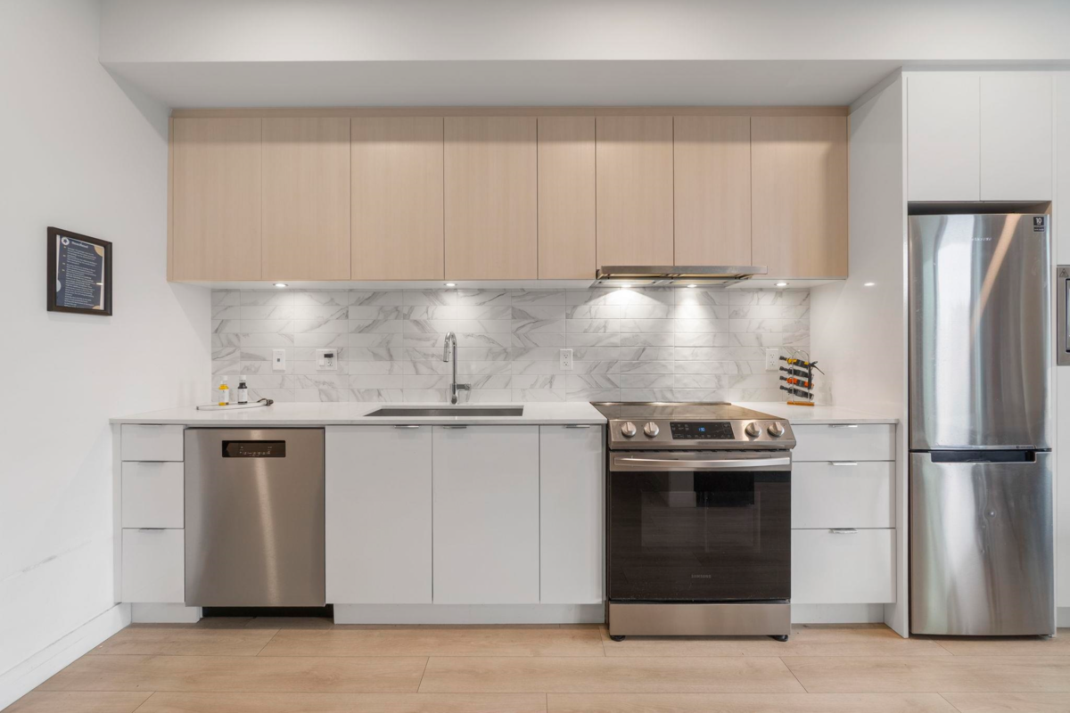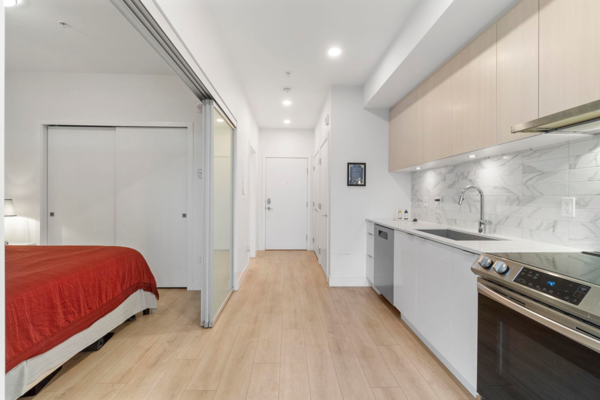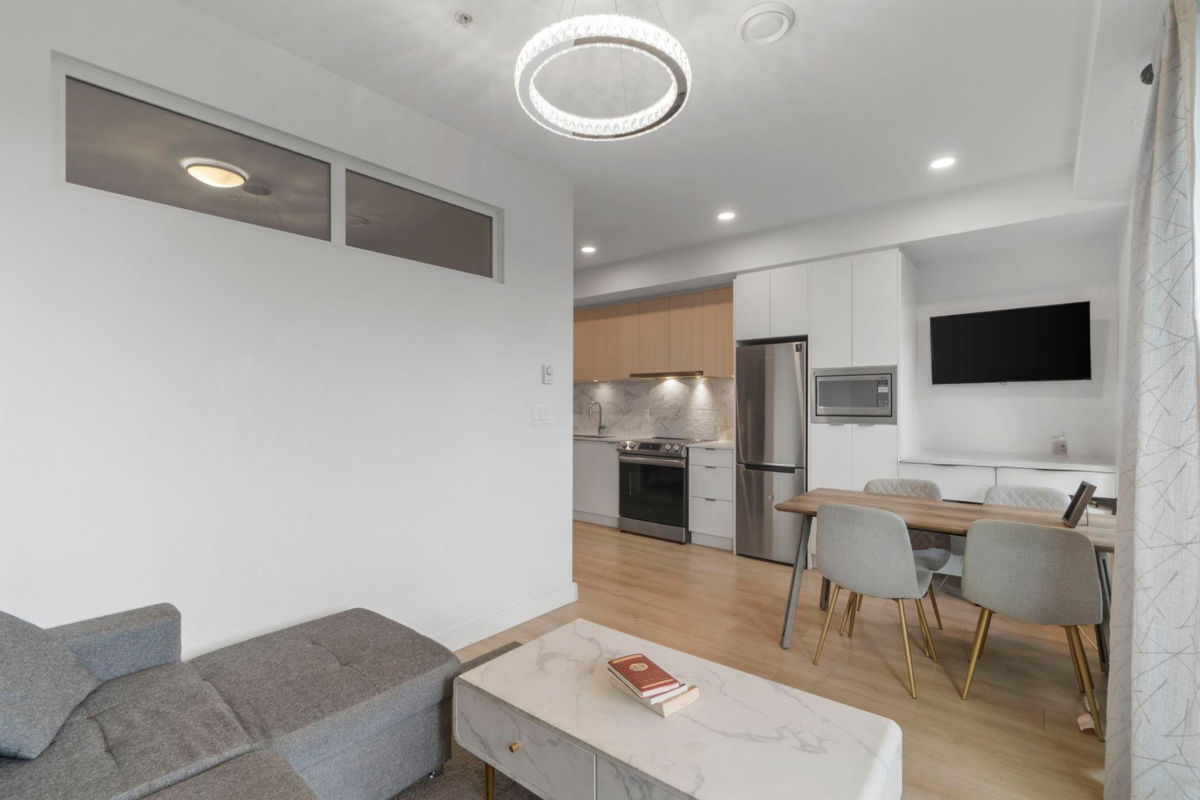 Ground-level 1-bedroom with a huge patio extending your living space outdoors. Facing green space and the TM mall. Efficient floorplan with no wasted space, high ceilings, oversized windows, and bright open-concept living. Modern kitchen with stainless steel appliances, quartz countertops, and sleek cabinetry. A bedroom with a large closet. Private patio Ideal for pet owners and anyone who values privacy and convenience. Residents enjoy The Nest Clubhouse with a fitness centre, lounge, meeting rooms, outdoor seating, and BBQ. Minutes to Tsawwassen Mills, parks, beaches, ferry terminal, major routes, U.S. border, and YVR. Quiet, well-connected community. The water park and golf course are very close. Perfect for investors, FTHB and downsizers.