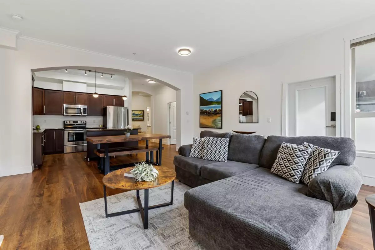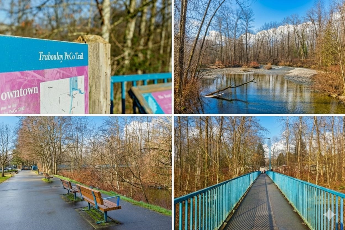 Beautiful 2 BEDRM + DEN CORNER HOME at Villagio, offering a RARE townhome feel with GATED PATIO & PRIVATE OUTDOOR ACCESS - ideal for dog owners - across from Traboulay Trail & right in the heart of PoCo! 1,378 sqft of one-level living feat 2 separated bedrms plus den—perfect as a 3rd bedrm for kids, guests, or home office - PLUS dedicated laundry room. Bright and airy with 9'10" ceilings, open layout, new flooring, fresh paint, updated lighting & upgraded S/S appliances. Luxurious primary bedrm with custom W-I-C & renovated ensuite. Enjoy a gym, bike room, 2 PARKING + LOCKER. Vibrant community steps to Gates & Lions Parks, PoCo Community Centre, schools, shops, cafés & West Coast Express. Families & downsizers enjoy the ultimate walkable, active lifestyle! Open House: Jan 24 & 25, 2–4 PM.