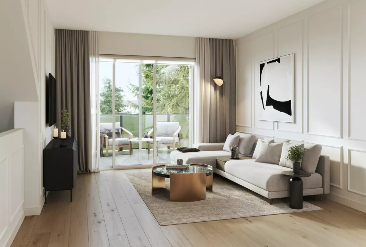 Morrison Walk | This stunning 2-bedroom, 2.5-bathroom townhome offers 1,380sq.ft. of total living space, including 1,088 sq.ft. indoors and 290 sq.ft. of private patios. The open-concept main level seamlessly connects the kitchen, dining, and living areas to a private patio, perfect for entertaining. Upstairs, the spacious primary bedroom features a luxurious ensuite complete with a double vanity, with a sun drenched second bedroom and full bath. Located in desirable Moodyville, North Vancouver, this home is steps from parks, shops, and transit. Customized parking and storage solutions available, yes we have room for all your toys! PRE-SALE OPPORTUNITY. Completion slated for Fall/Winter 2026.