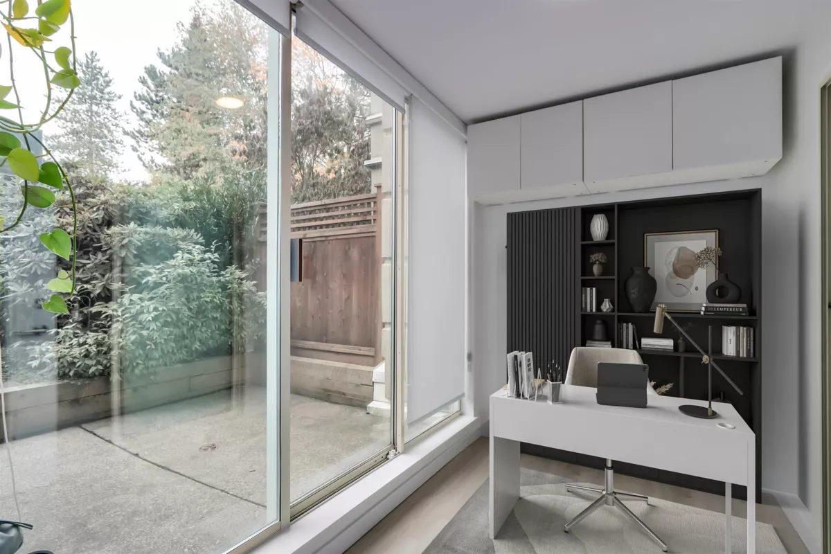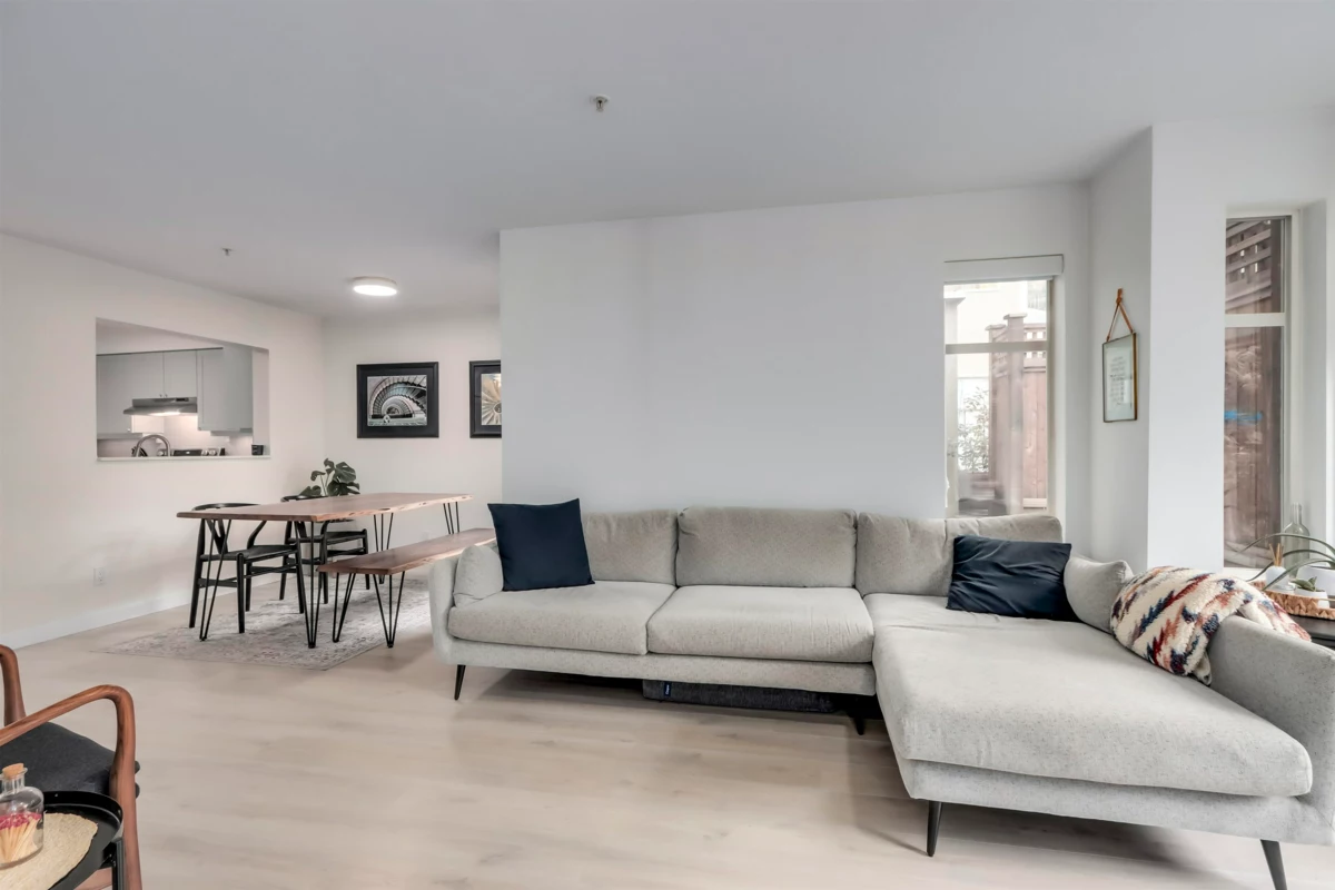 Privacy and tranquility await you in this beautifully renovated and IMMACULATE ground level suite at the Legends building in North Vancouver. Take advantage of the laid out floor plan with no wasted space and whisper quiet (sound dampening added to ceilings to ensure a peaceful sleep). This corner unit opens up to a private patio, and beyond that, the expansive and enclosed private gardens. Situated at the edge of trails and a short stroll to Parkgate Village and easy access to Seymour and Deep Cove, this pet friendly building checks off all the boxes. There's nothing to do here but move in. Professionally measured at 759 sq ft. Buyer to do their own measurements to their own satisfaction. Patio and office have been virtually staged. Please contact your agent to view this home today!