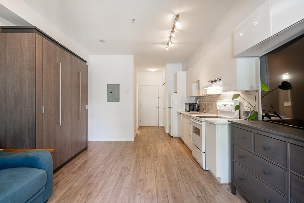 The BALANCE is move in ready with so much included for first time buyer or investor. Includes FREE NEW: Murphy bed, mattress, dresser, TV, sofa, microwave, washer/dryer and 2 shelves. Currently renting prkg spot. Has Storage locker too. Location close to everything you need or want, so convenient SFU, Central City, Surrey Central Mall, Recreation Center, Shopping, Restaurants, walk to skytrain and bus. Efficient floor plan, in suite laundry, spacious patio, 9' ceilings, visitor parking, and best of all ground floor. Great for pet owners. High scores for...walk, drive, education, recreation, amenities, transportation and nature. What a fantastic opportunity! View it soon, it is a gem. Offers anytime, show anytime. Call to view.