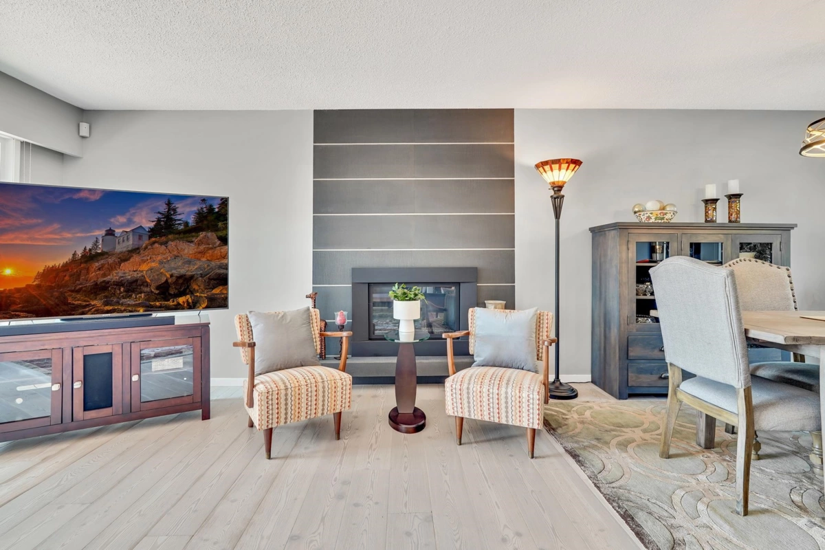 Stunning Ocean View Condo at Sea Vista! Perched on White Rock’s coveted Prospect Avenue, this boutique building offers ocean views. Renovated in 2025, this immaculate 2 bed, 2 bath corner unit features 1,164 sqft of bright, modern living with only one shared wall for added privacy and natural light. All new kitchens and bathrooms, and a cozy gas fireplace (gas included in fees). The 182 sq ft south-facing balcony is perfect for entertaining. Well managed building with many updates! Exterior project just completed: new glass railings, vinyl decking, fascia, and fresh paint - are fully paid by the seller. Fully rainscreened. In-suite laundry, 1 parking, free street parking, and 1 storage included. Rentals allowed (no short-term). No pets/smoking.