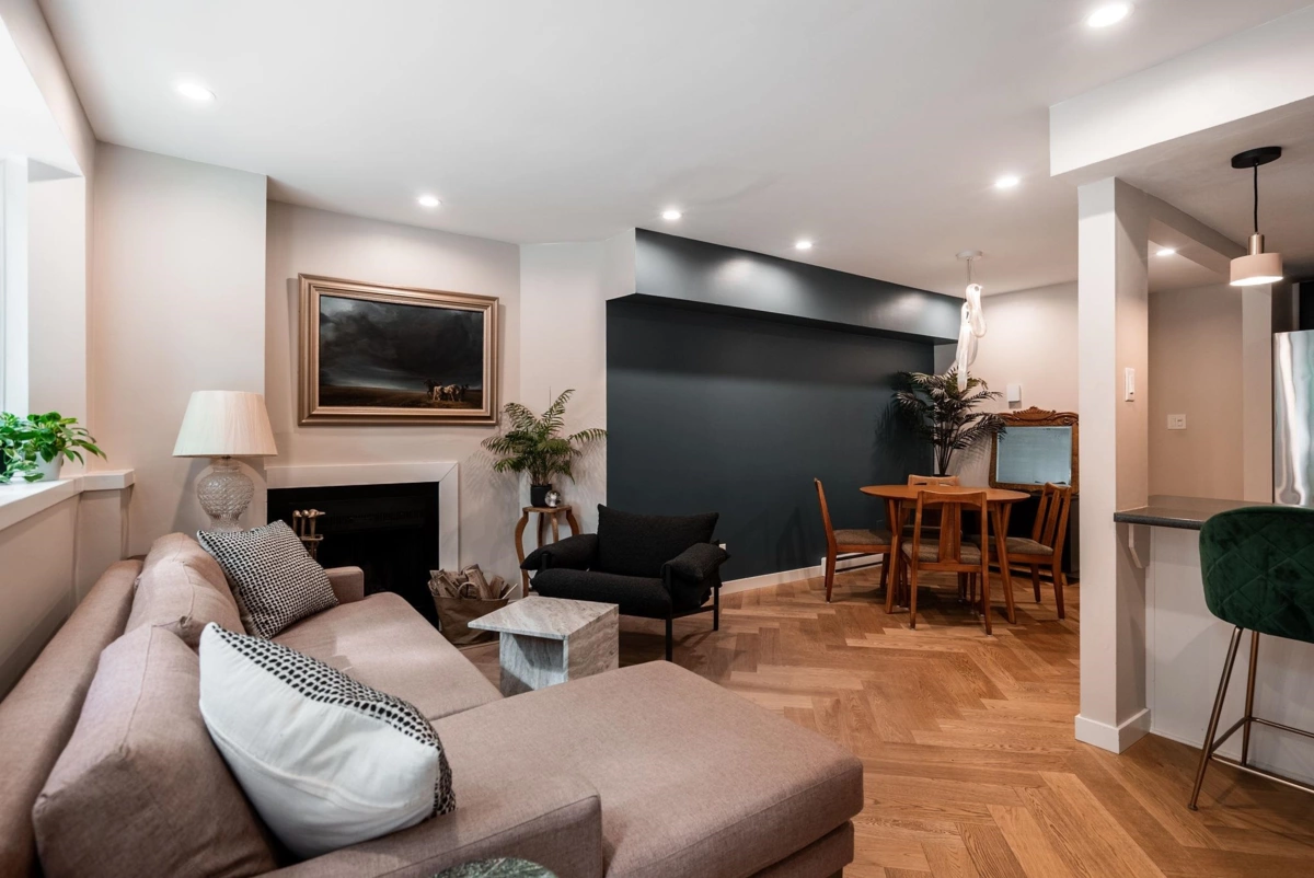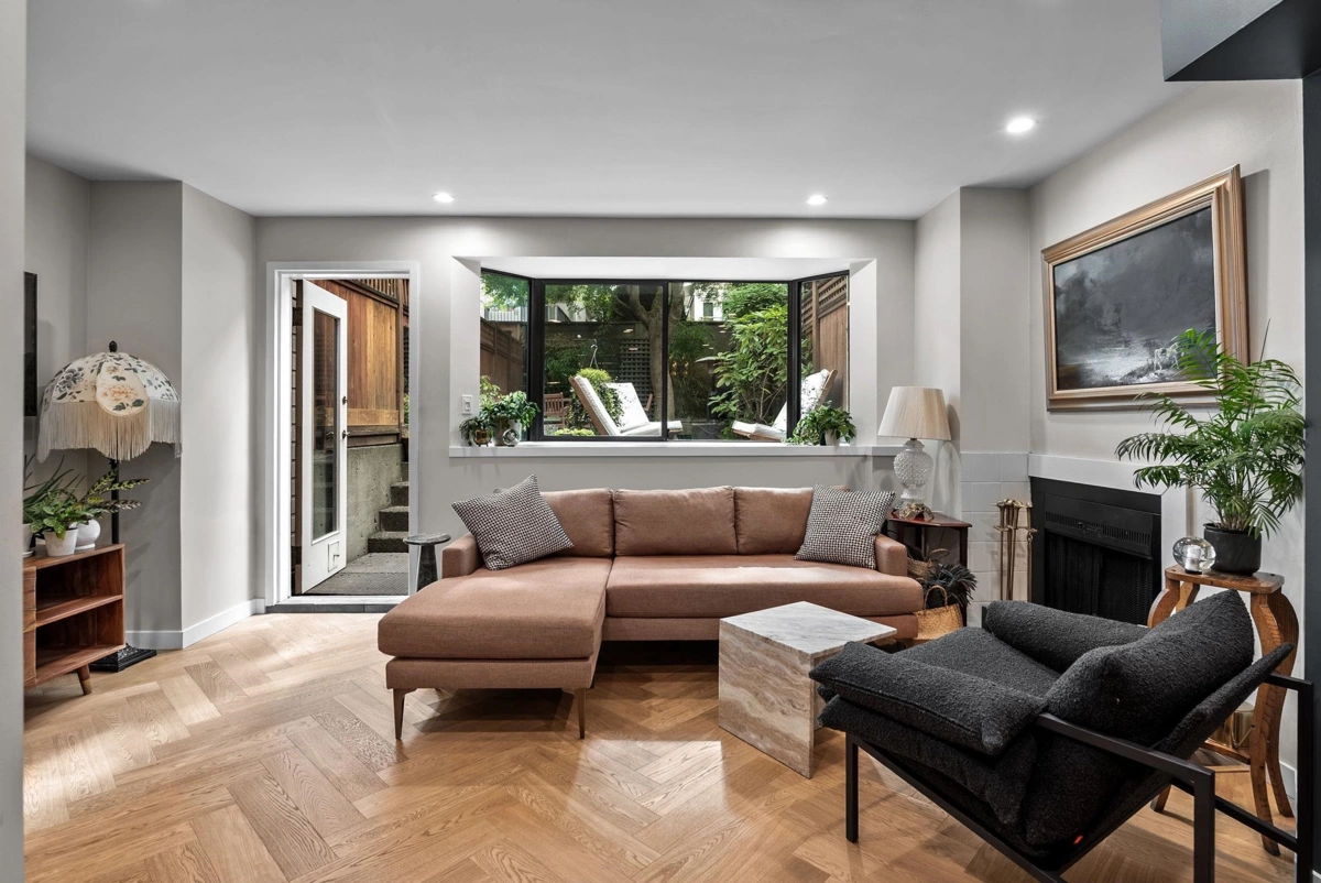 Gorgeous South facing 2 bed, 2.5 bath home on a quiet tree-lined street in Kits. Updated white oak herringbone floors, all new appliances, and a cozy wood burning fireplace to enjoy. Both bedrooms feature ensuites with the primary having an oversized soaker tub. This condo boasts 3 separate outdoor areas on each level, including a private rooftop deck and large garden patio. Great for entertaining! Building updates include a new roof and patios (2023). Steps to trendy shops, Arbutus Greenway, cafes, restaurants, beach/parks. Future Arbutus and Granville station a few blocks away. Pet-friendly and incudes 2 parking as well as storage.